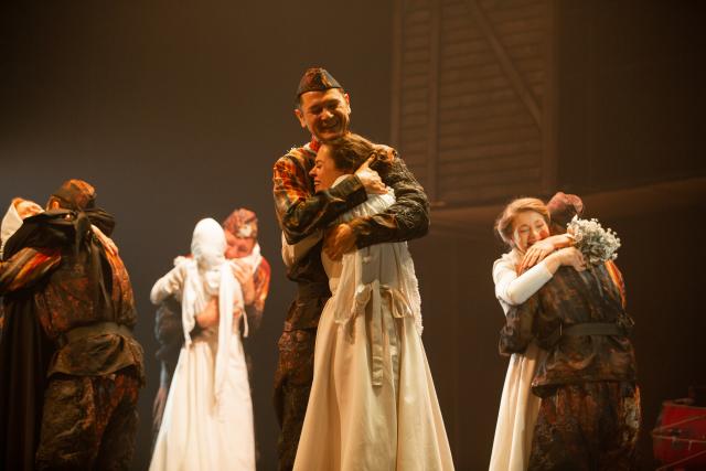 В спектакле присутствует образ Смерти (Галина Волокитина), чье дыхание ощущает каждый, ведь она всегда рядом. Победить ее невозможно, но победить страх внутри себя и встретиться с ней лицом к лицу – уже подвиг. Основная визуальная идея спектакля – это не историческая реконструкция событий, а символическое пространство для впечатлений. Многосюжетность постановки реализуется через динамичные переходы между сценами и быструю смену разных локаций. Три движущиеся люстры с кинетическими механизмами олицетворяют Бал Смерти, куда приглашены солдаты, танцевать с ней роковое танго. Костюмы стилизованы и разрабатывались со спецификой включения в спектакль множества хореографических номеров.