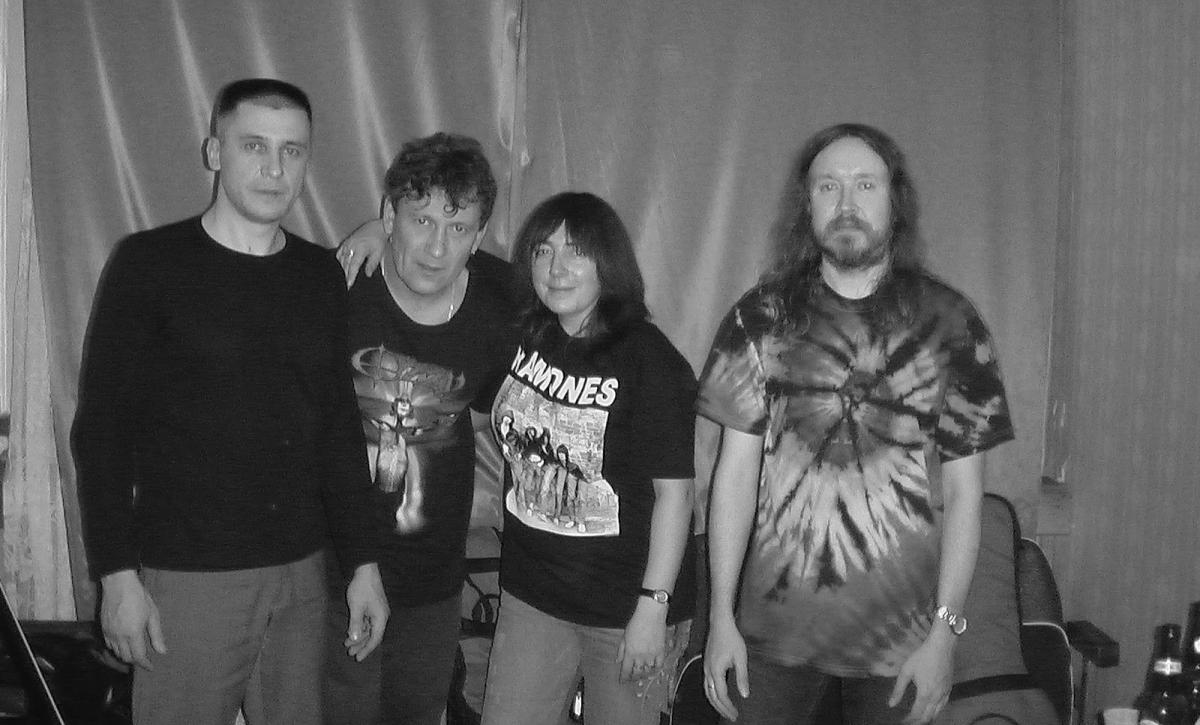 На фото слева направо: Павел Перетолчин, Александр Чеснаков, Наталья Чумакова, Егор Летов. Фото: Сергей Попков