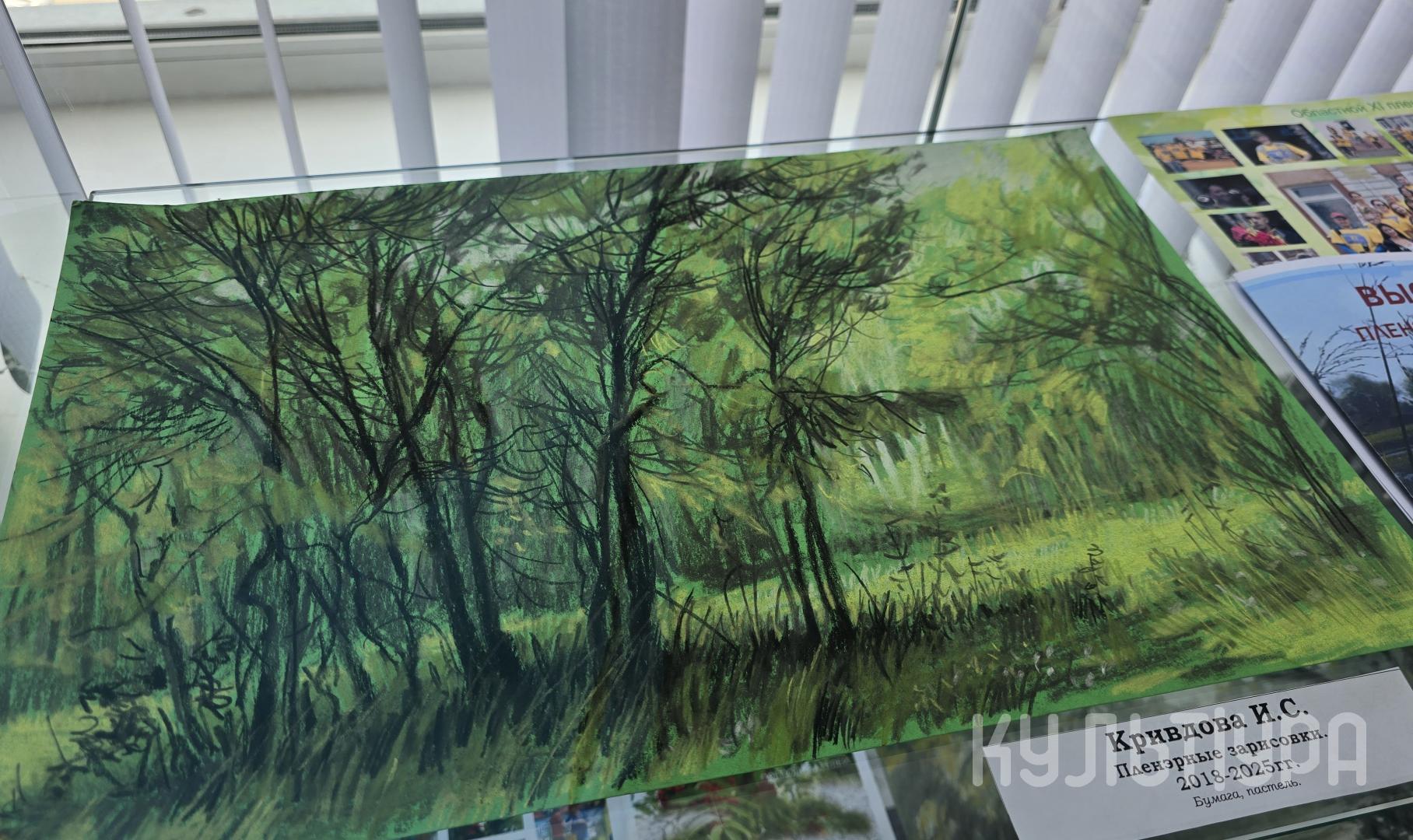 В экспозиции представлены пейзажи, натюрморты и графические работы, выполненные в технике пастели. Цвет для авторов – не только выразительное средство, но и отражение их эмоционального состояния. На выставке представлены как лирические сцены, напоминающие работы Левитана, так и экспрессивные полотна в духе Ван Гога.