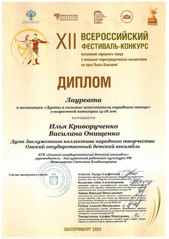Хореографическая группа под управлением Заслуженного работника культуры России Светланы Пономаревой вернулась из Екатеринбурга, где завершился XII Всероссийский фестиваль-конкурс ансамблей народного танца и вокально-хореографических коллективов на приз Ольги Князевой.