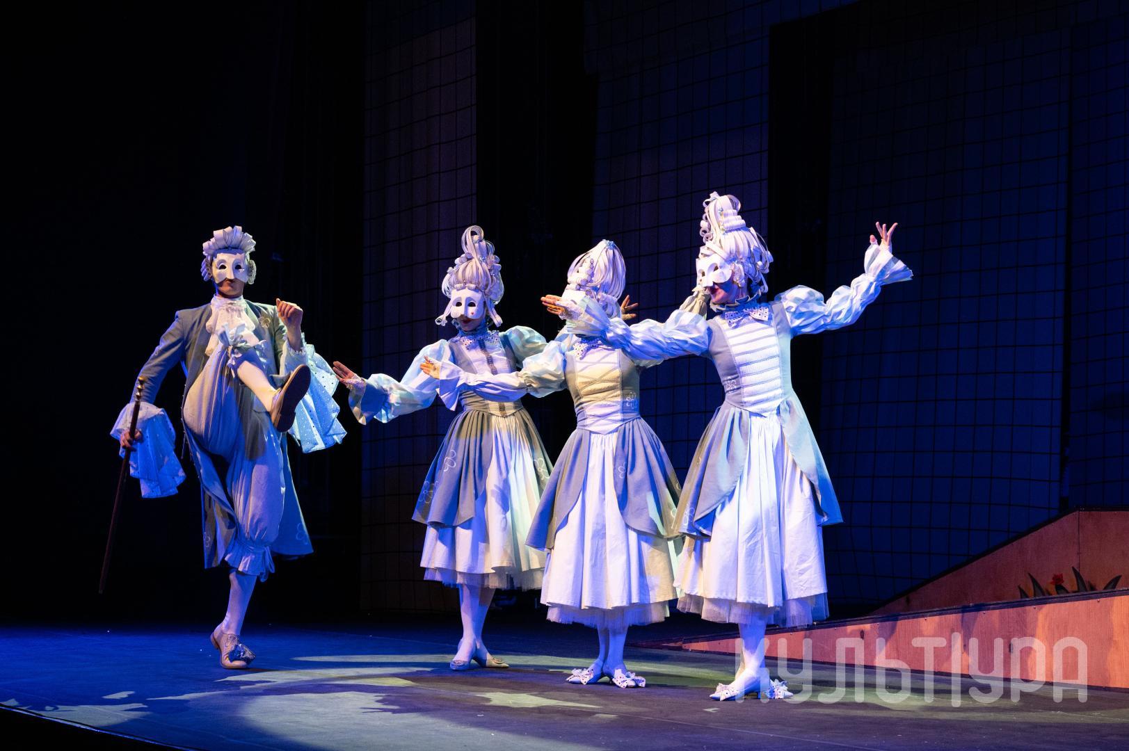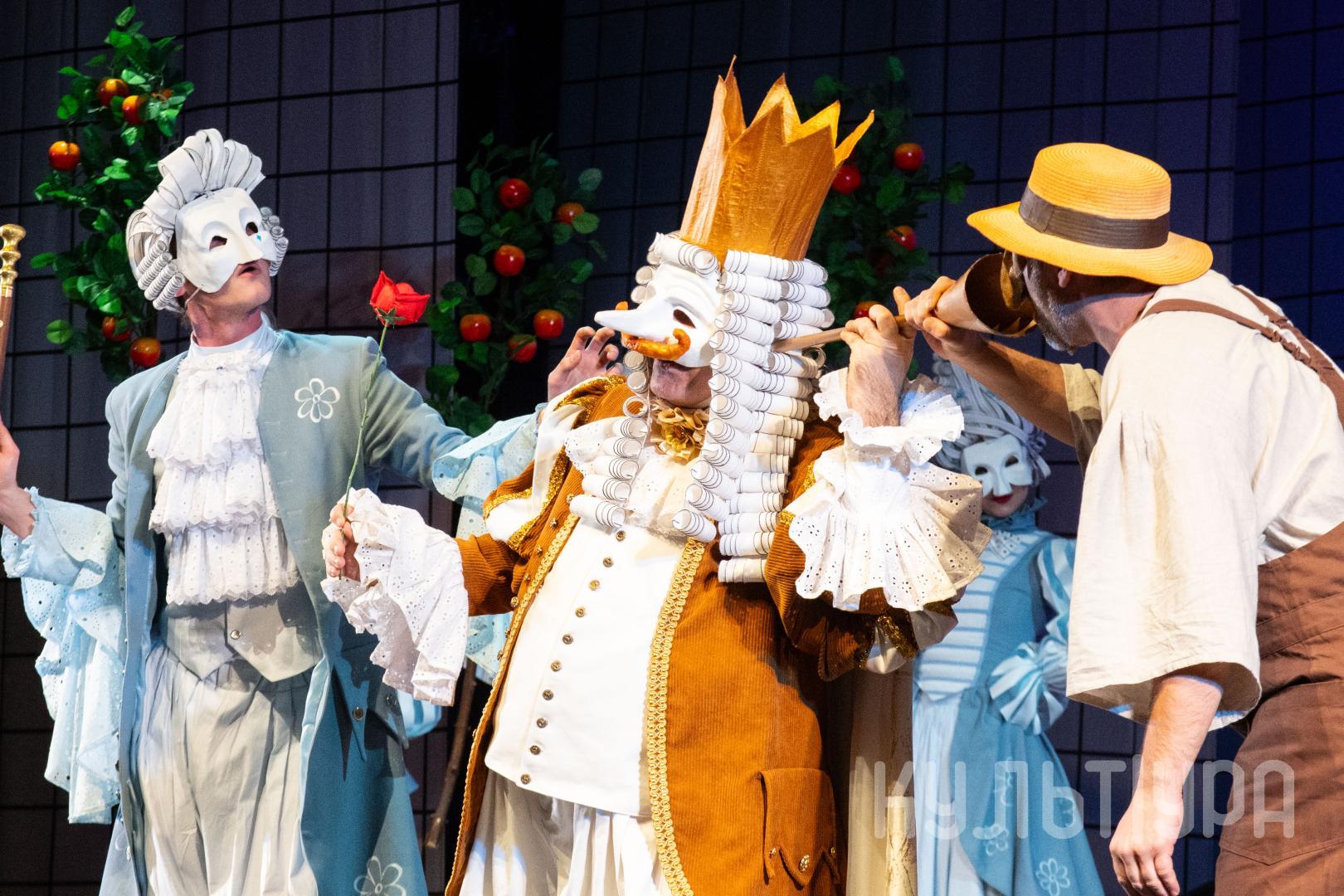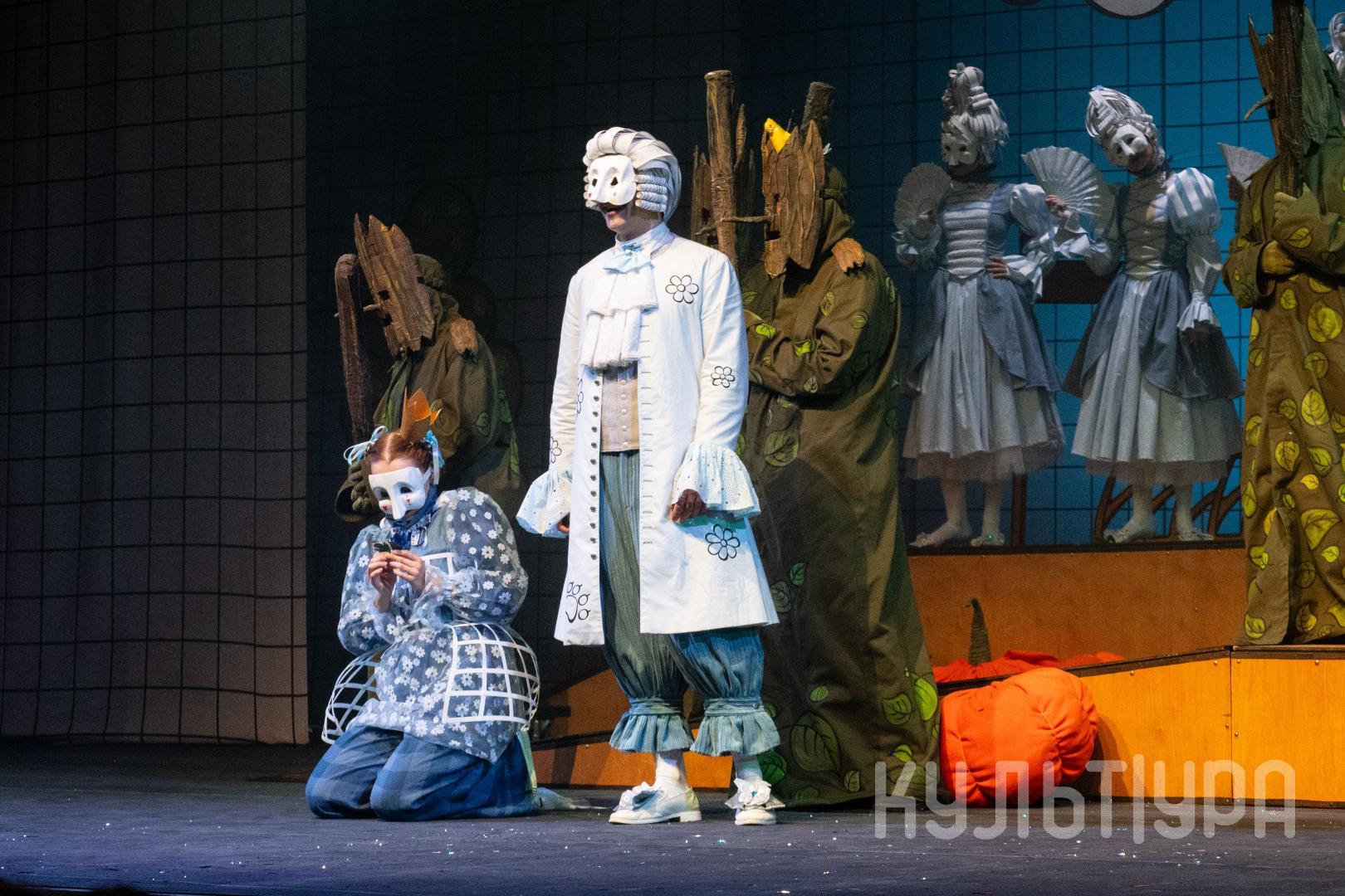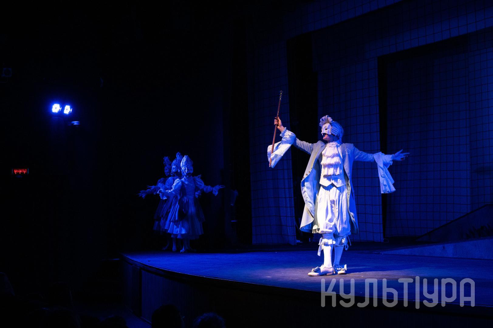 Главный герой сказки — Кот в сапогах. В исполнении Егора Лябакина он чрезвычайно обаятельный, ловкий и общительный. Принцесса, король, придворные, братья Стефана, фрейлины – всех их объединяют... венецианские маски на лицах. Придуманный создателями спектакля ход придает знакомому сюжету особую магию и удваивает его сказочность. Лица артистов зрители увидят только на поклонах, после окончания спектакля. На протяжении всего действия ни один из персонажей не покажет своего лика. Даже деревья, крестьяне и ветер-ураган останутся отчасти таинственными.