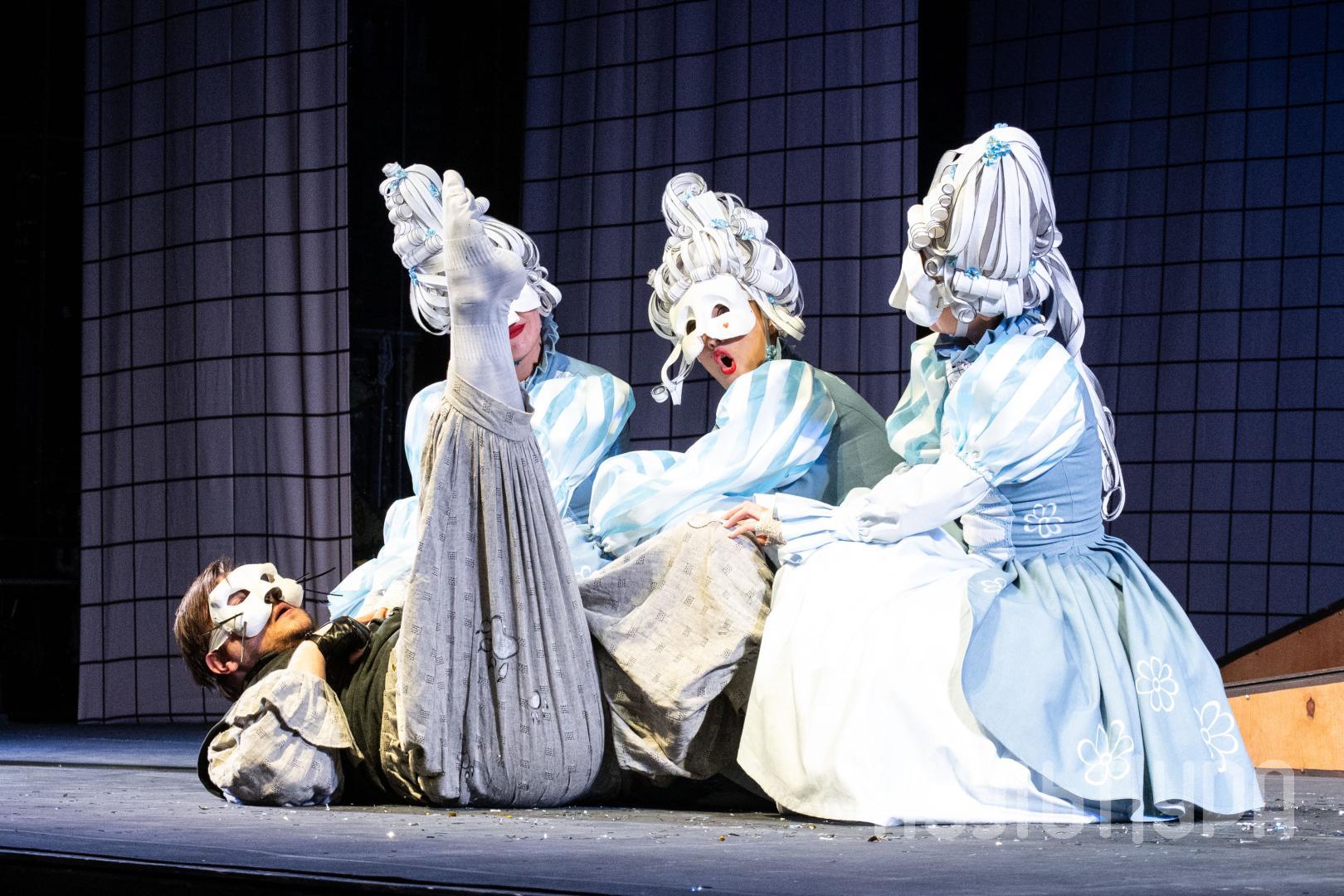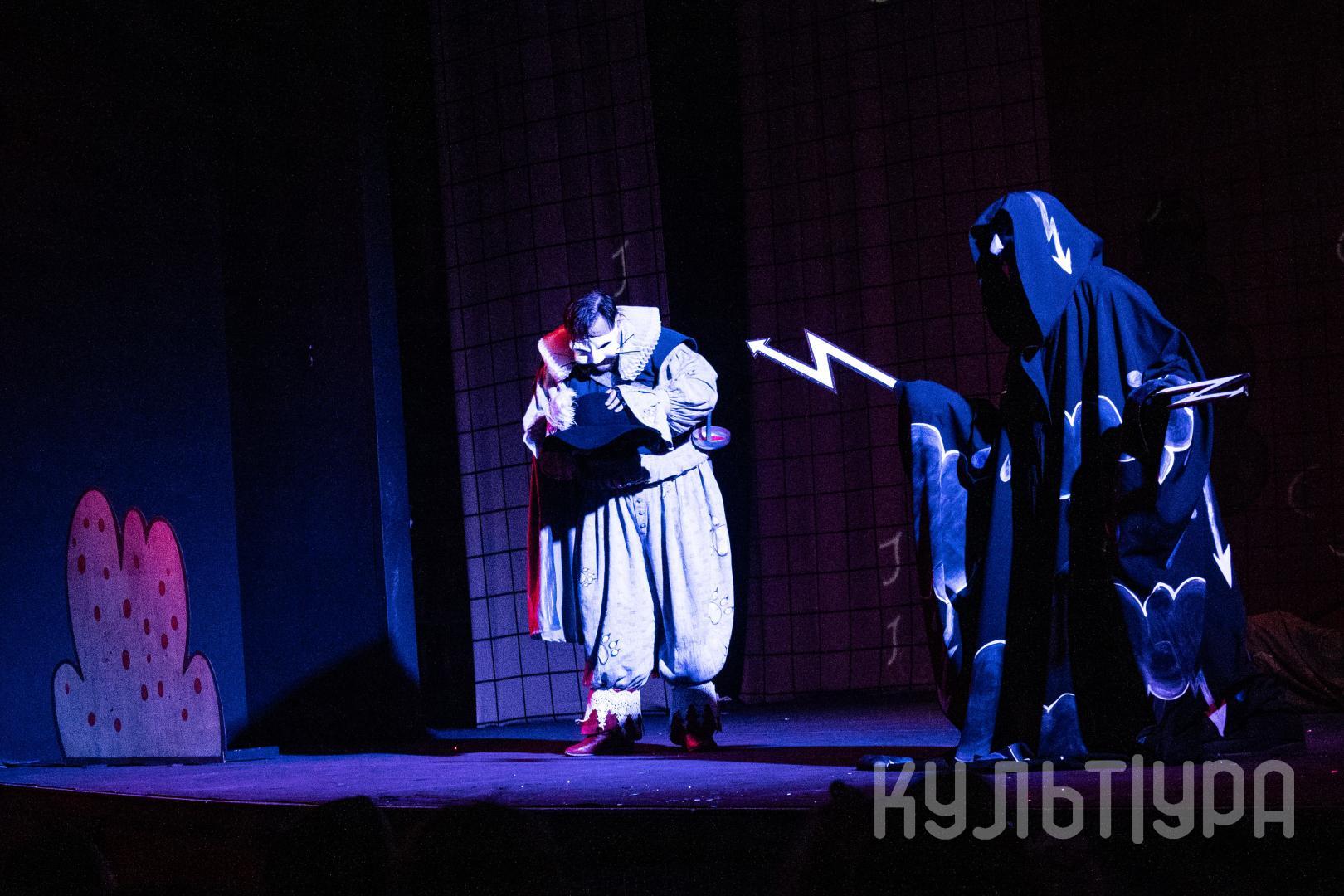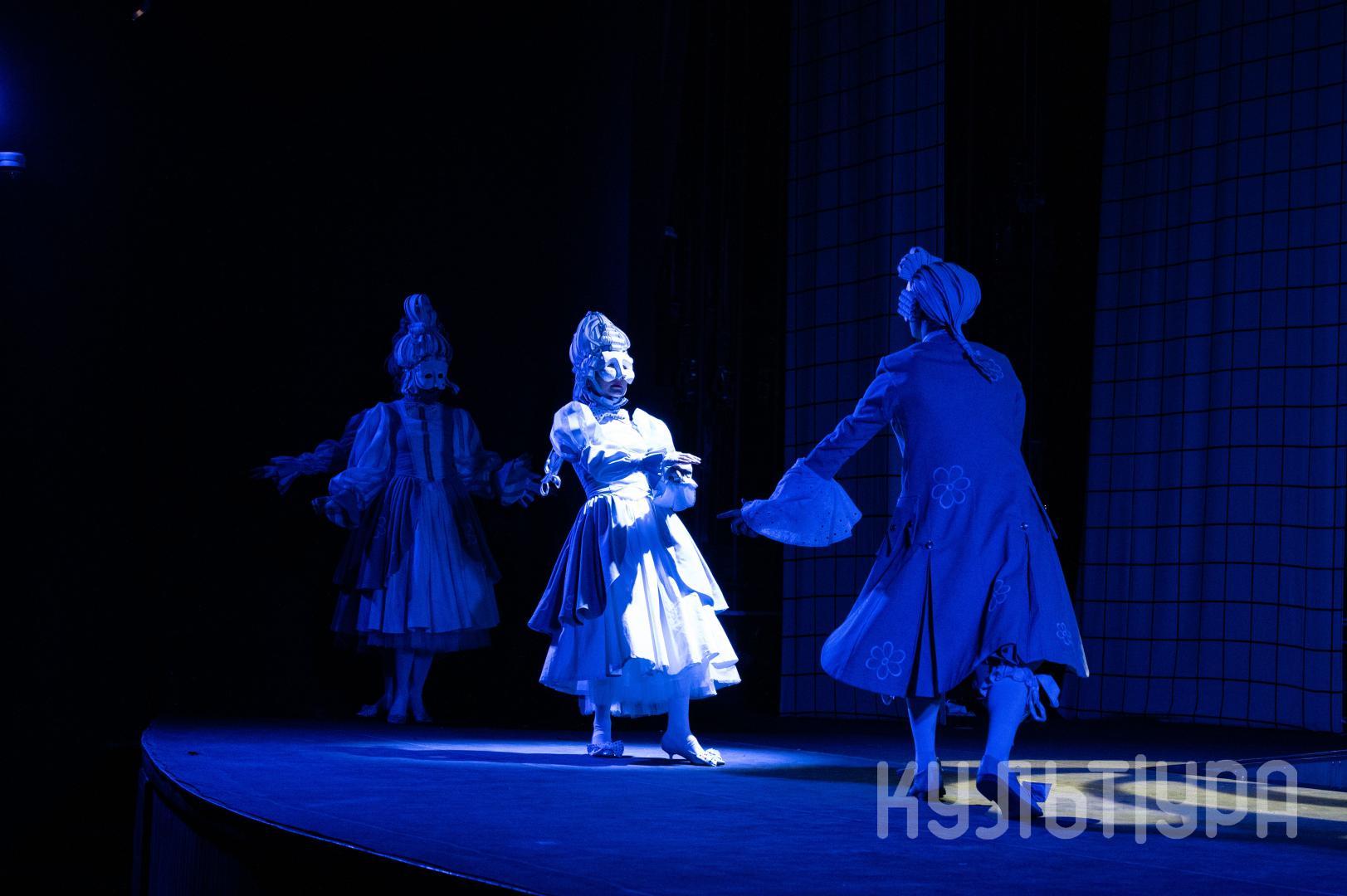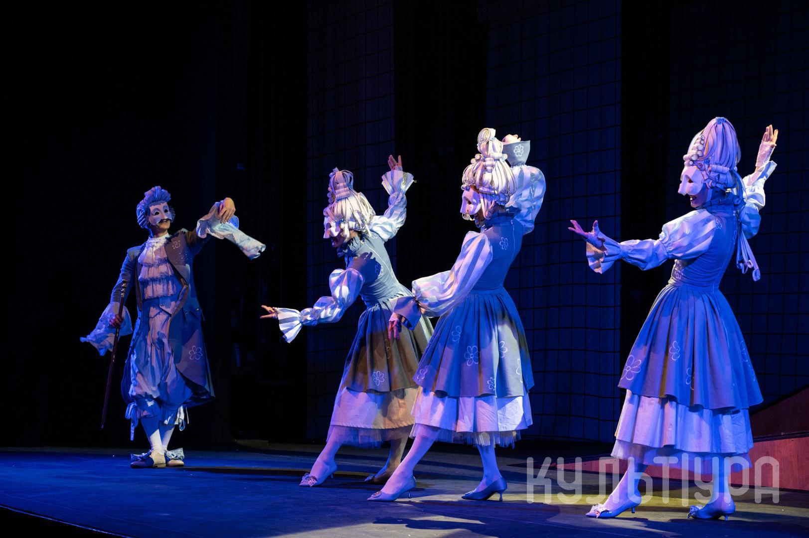 Главный герой сказки — Кот в сапогах. В исполнении Егора Лябакина он чрезвычайно обаятельный, ловкий и общительный. Принцесса, король, придворные, братья Стефана, фрейлины – всех их объединяют... венецианские маски на лицах. Придуманный создателями спектакля ход придает знакомому сюжету особую магию и удваивает его сказочность. Лица артистов зрители увидят только на поклонах, после окончания спектакля. На протяжении всего действия ни один из персонажей не покажет своего лика. Даже деревья, крестьяне и ветер-ураган останутся отчасти таинственными.