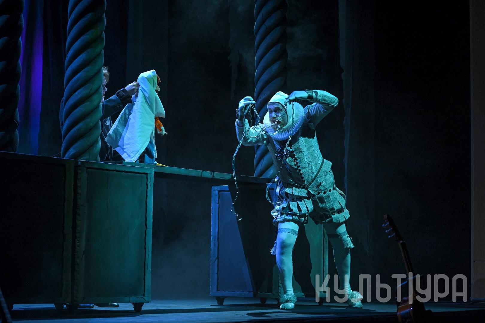 «Сложно, конечно, соревноваться с кинематографом, но театру кукол вполне подвластно сделать так, чтобы зритель поверил в происходящие на сцене чудеса и прикоснулся к мистике и загадке. Вообще этот спектакль не только попытка совместить мир мистический и мир реальный, эта постановка — такая своеобразная игра со временем. По сюжету нам требуется совершать скачки в повествовании на триста лет назад и вперёд, и здесь нам очень помогает музыка и видео. Мы подобрали музыку, соответствующую тому времени, в котором происходят события, а историю Призрака мы расскажем в нескольких мини-фильмах, стилизованных под немое кино»