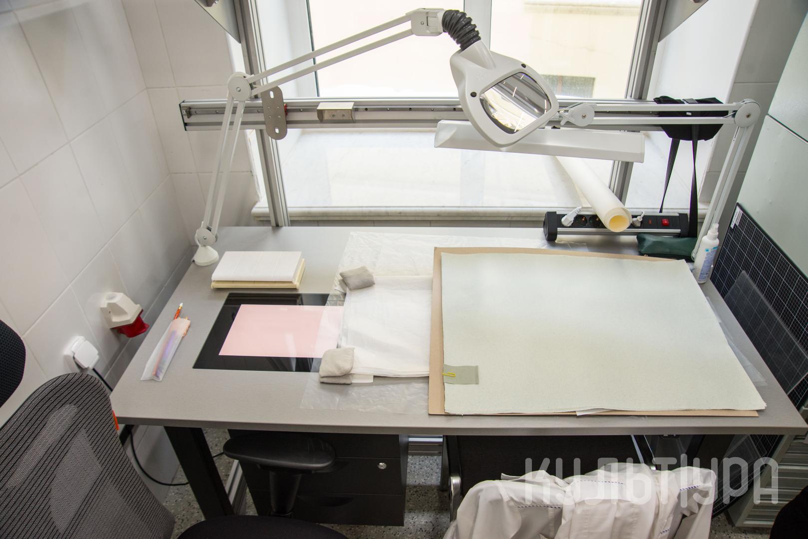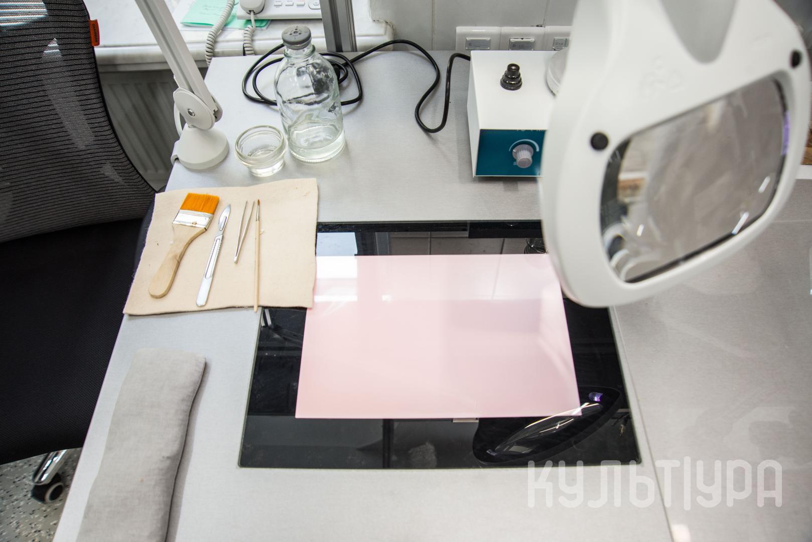 В Омском областном музее изобразительных искусств имени М. А. Врубеля в здании Центра «Эрмитаж-Сибирь» в полном объеме начала работать реставрационная мастерская, оснащенная новым, специально закупленным оборудованием: удобные и функциональные комплексные рабочие места реставраторов (укомплектованные лупой с подсветкой и УФ-лампой, встроенным световым листом, антистатическим покрытием), прессы для книг и произведений графики, мобильные вакуумные столы (стол низкого давления) для реставрации музейных предметов на бумажной и тканевой основе, многофункциональный рабочий стол, предусматривающий плавный подъем столешницы и позволяющий работать как сидя, так и стоя (может быть использован как мольберт и упаковочный стол), мобильные вытяжки, предназначенные для локальной фильтрации вредных газов.