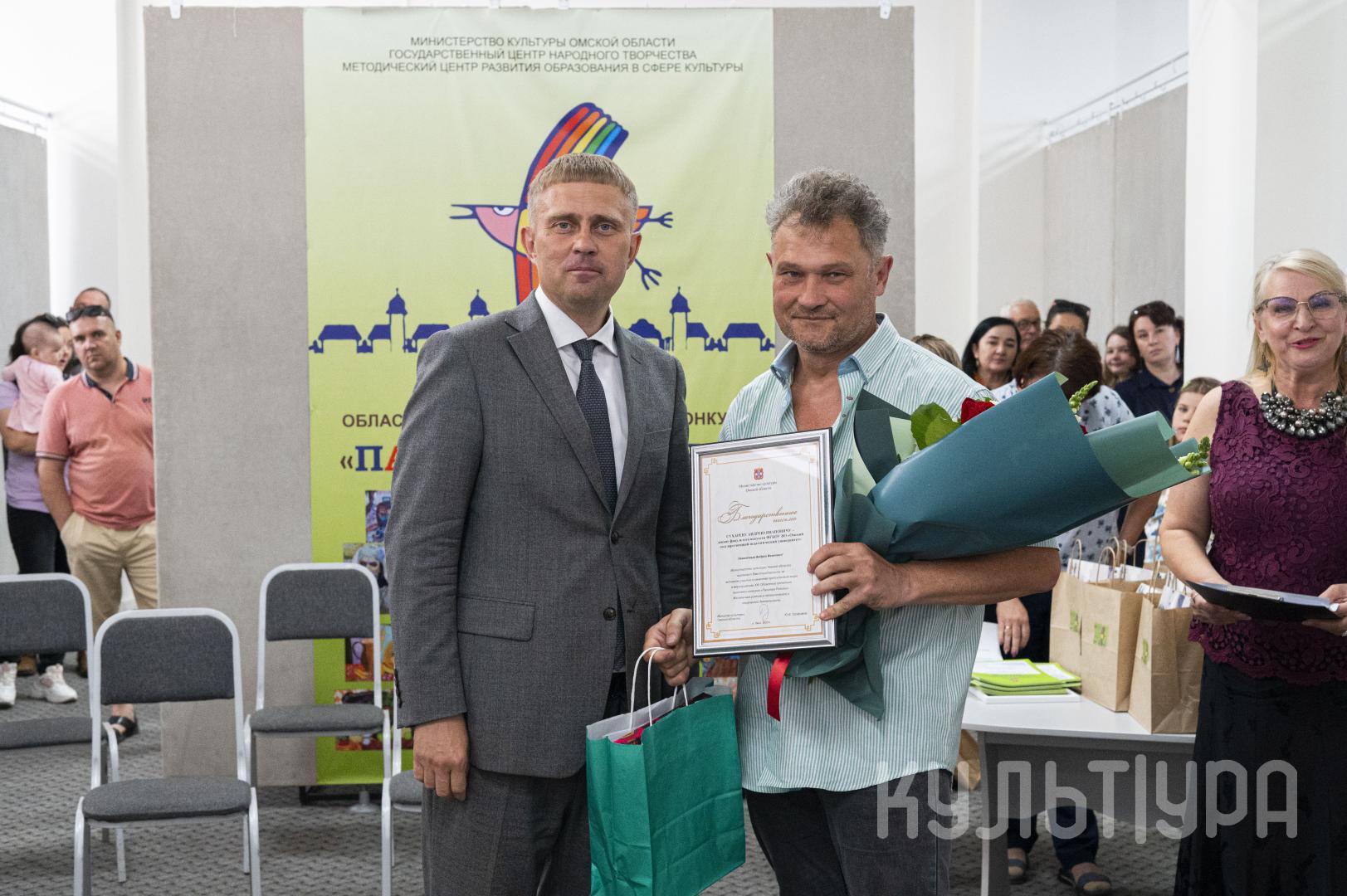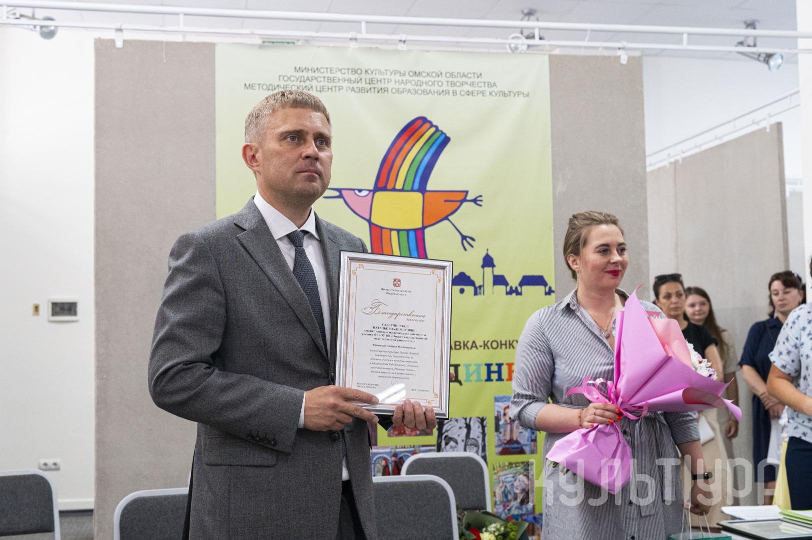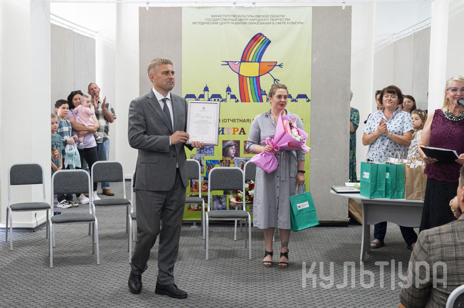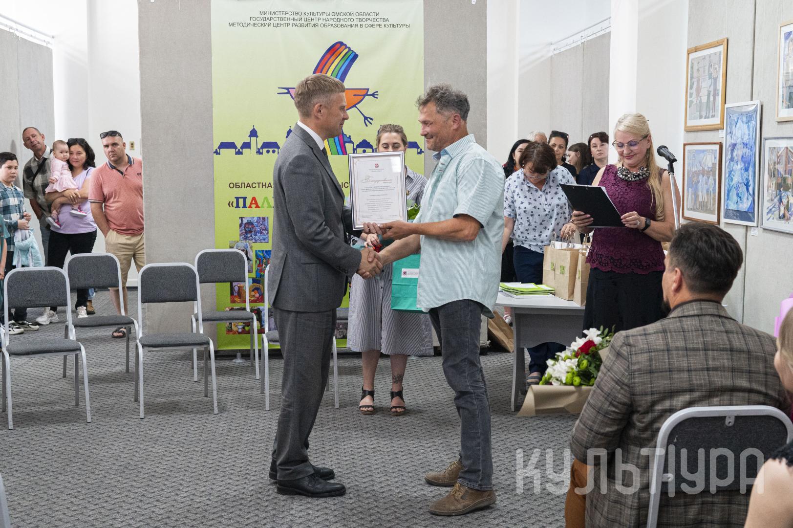 Юрий Трофимов вручил благодарственные письма регионального министерства культуры председателю жюри, декану факультета искусств Омского государственного педагогического университета Андрею Сухареву; членам жюри, кандидату педагогических наук Наталье Савлучинской и директору Детской художественной школы № 3 имени Гурова Сергею Горчакову.