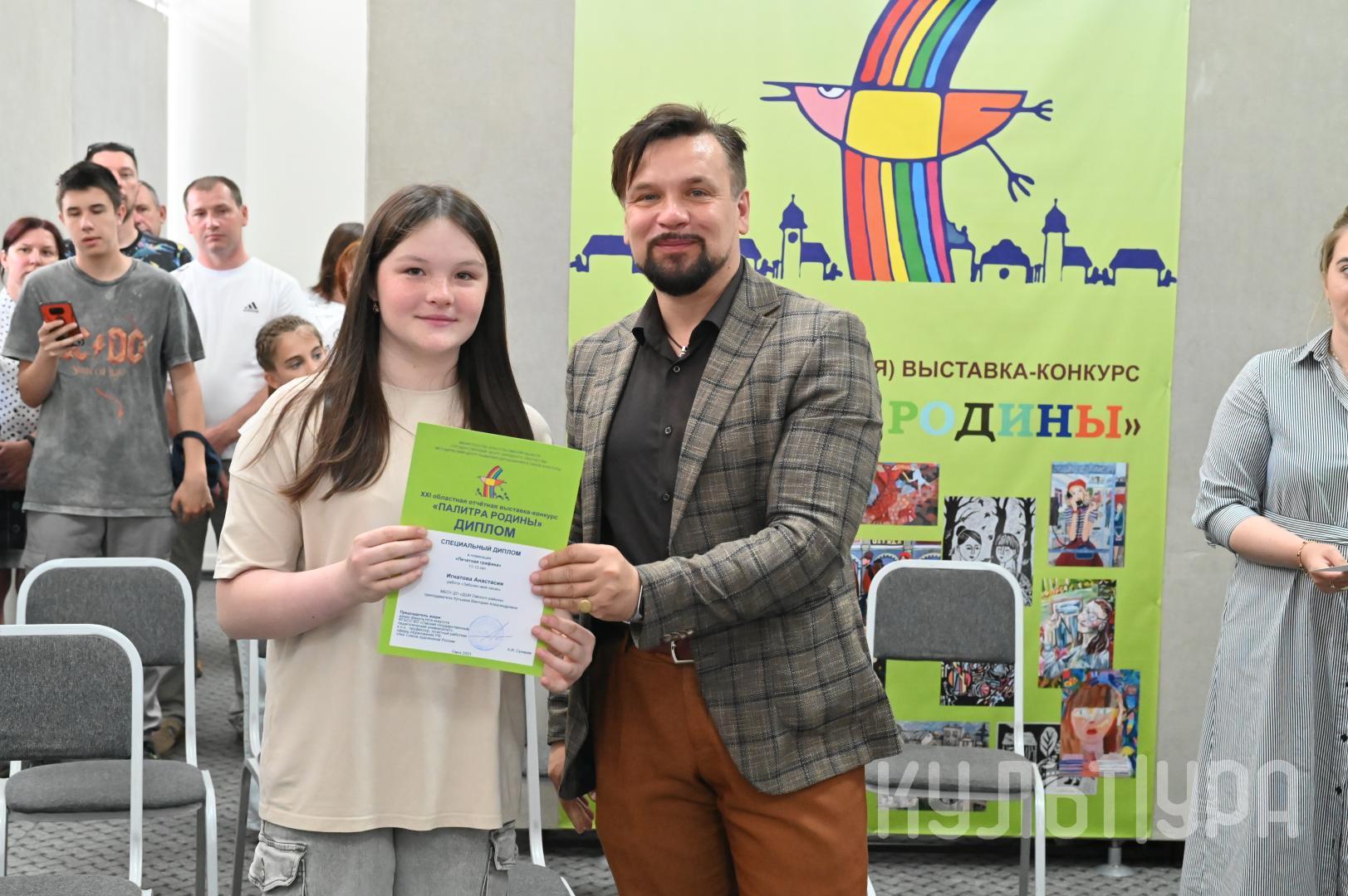 - Конкурс «Палитра Родины» позволяет открывать новые таланты, - отметил Министр культуры региона Юрий Трофимов. – Омская область богата одаренными ребятами. Я благодарю всех педагогов, которые вкладывают душевные силы, профессионализм в развитие подрастающего поколения. Огромна значимость этого мероприятия в культурной жизни региона, в формировании творческого потенциала Омской области.