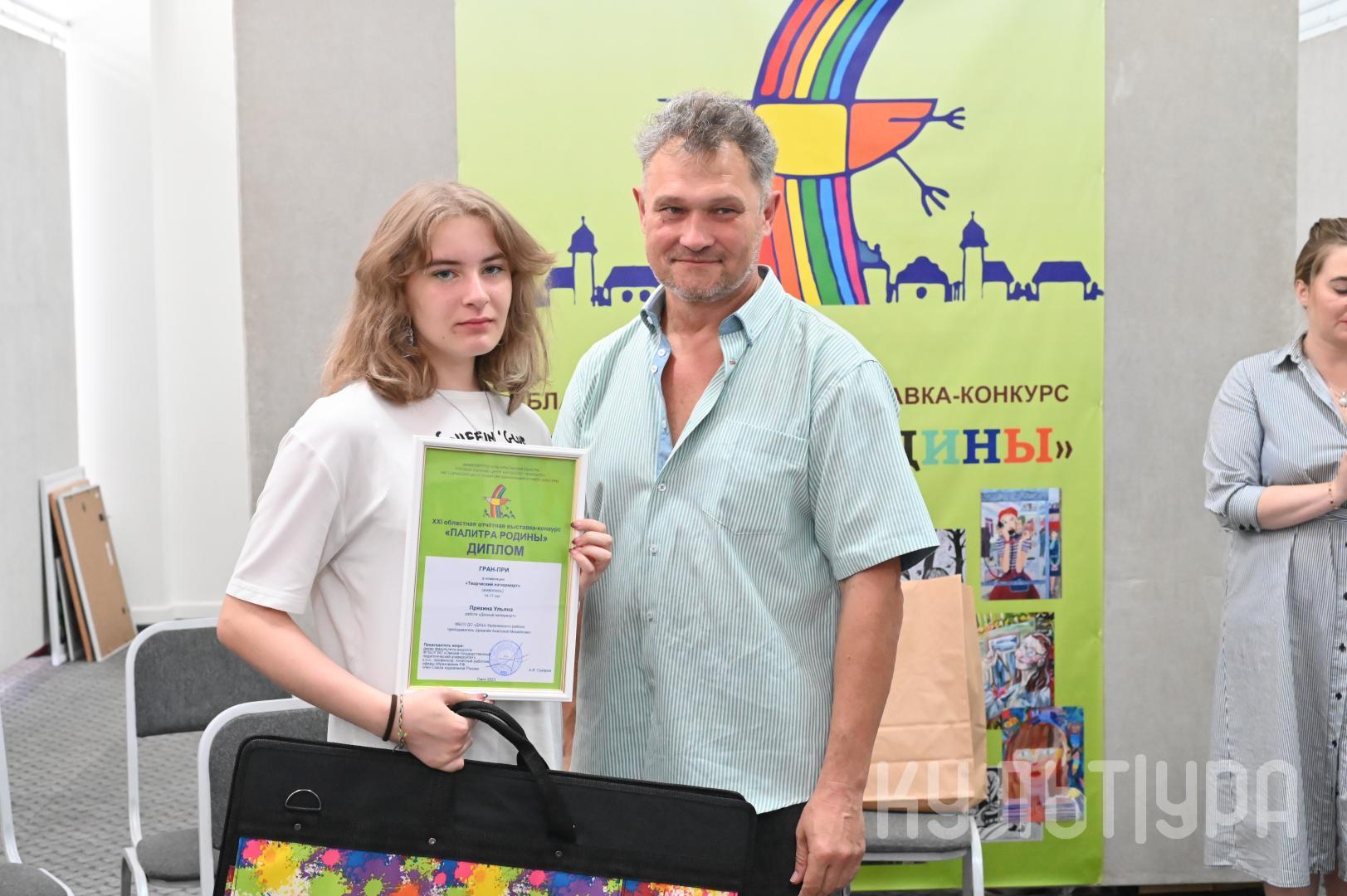Обладателем Гран-при выставки-конкурса «Палитра Родины» стала учащаяся Калачинской детской художественной школы Ульяна Пряхина с работой «Дачный натюрморт» (преподаватель - Анатолий Щикалев).