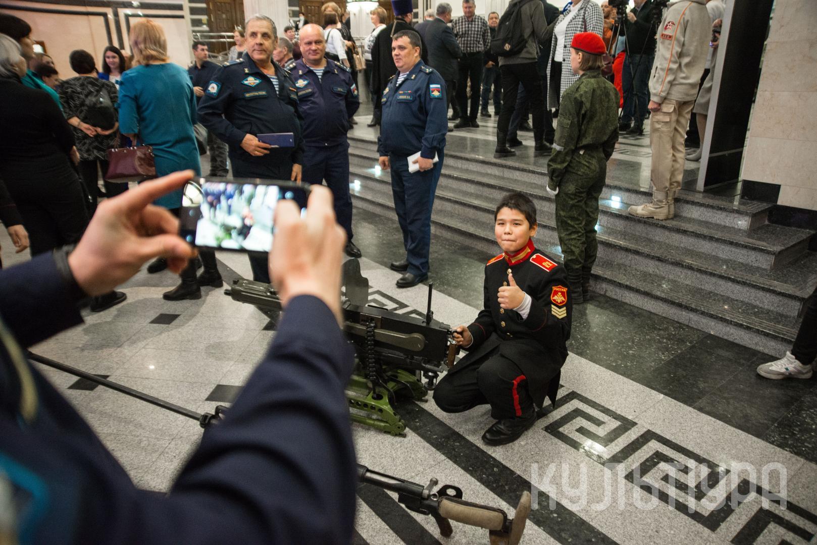 Проникнуться атмосферой праздника гости события могли еще до начала концертной программы. В фойе их встречала выставка «Герои России»: здесь были представлены экспозиции, начиная с времен Отечественной войны 1812 года до нынешних. Помимо этого, можно было изучить макеты оружия советского – периода Великой Отечественной войны – и современного.
