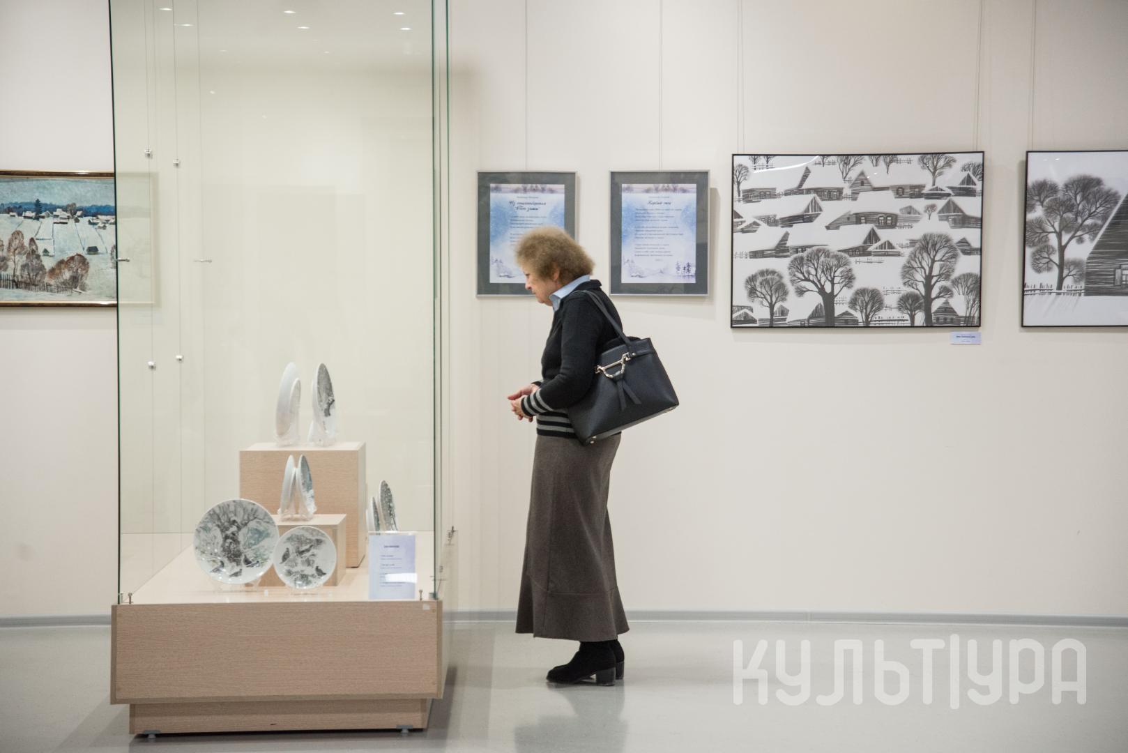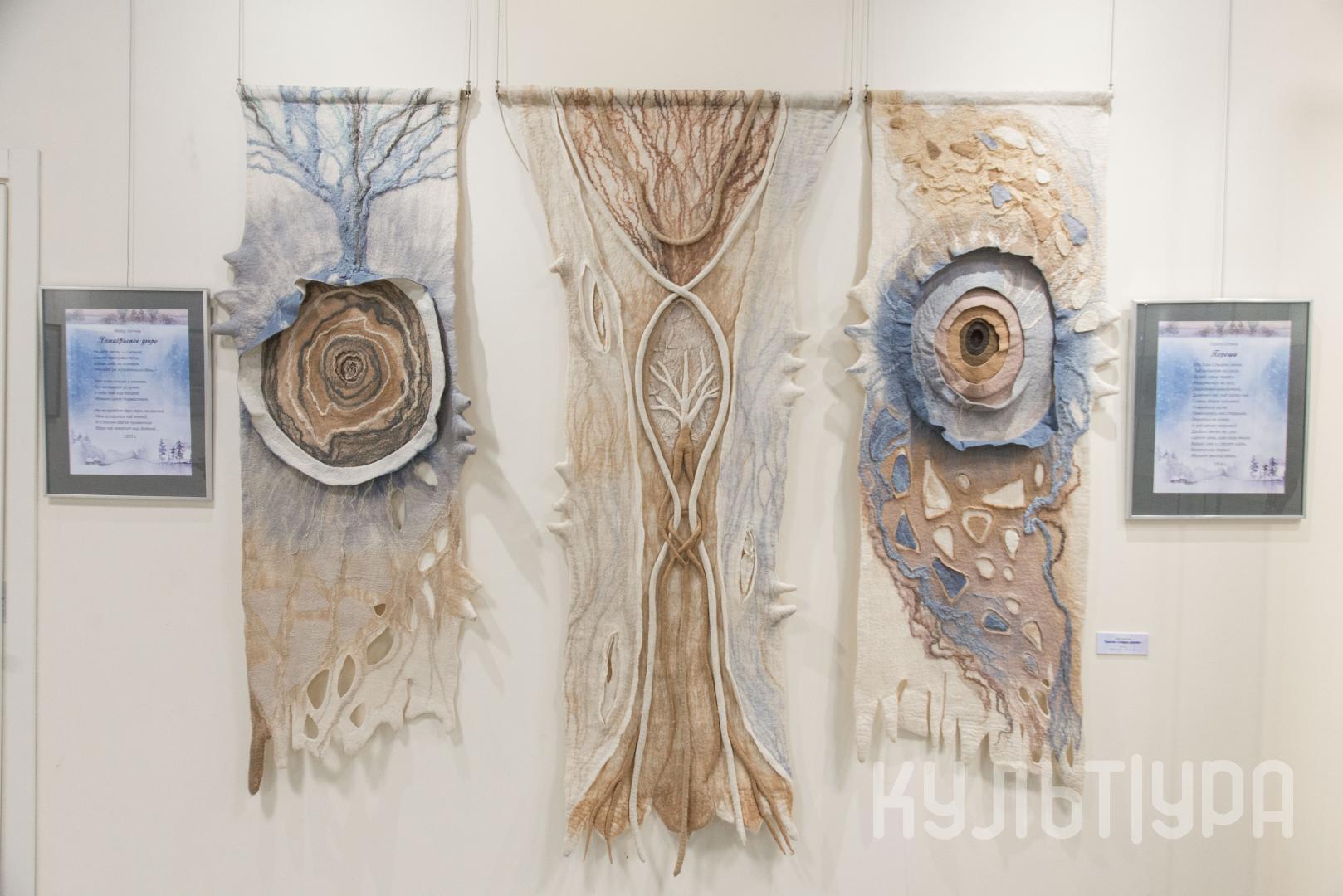 Прекрасным дополнением экспозиции «Чародейка Зима» выступают произведения художников-прикладников Марии Мороз (техника фьюзинг), Юлии Терехиной (техника фелтинг) и Зои Минеевой (надглазурная роспись).