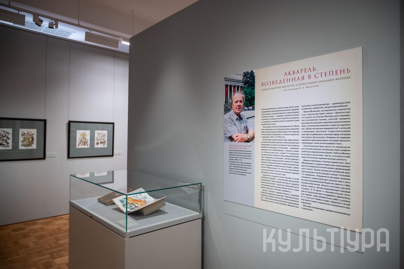 В Центре «Эрмитаж-Сибирь» открылась выставка работ известного московского графика Александра Мелихова «Акварель, возведенная в степень». В экспозиции 82 работы — иллюстрации к произведениям из золотого фонда мировой литературы: древнеиндийский эпос «Махабхарата», сказки «Тысяча и одна ночь», «Хождение за три моря» Афанасия Никитина, сказки Г. Х. Андерсена, роман «Война и мир» Л. Н. Толстого, «Иллюстрированный толковый словарь для детей и школьников» В. И. Даля. Суммарный тираж изданий с иллюстрациями Мелихова превышает 2 000 000 экземпляров.