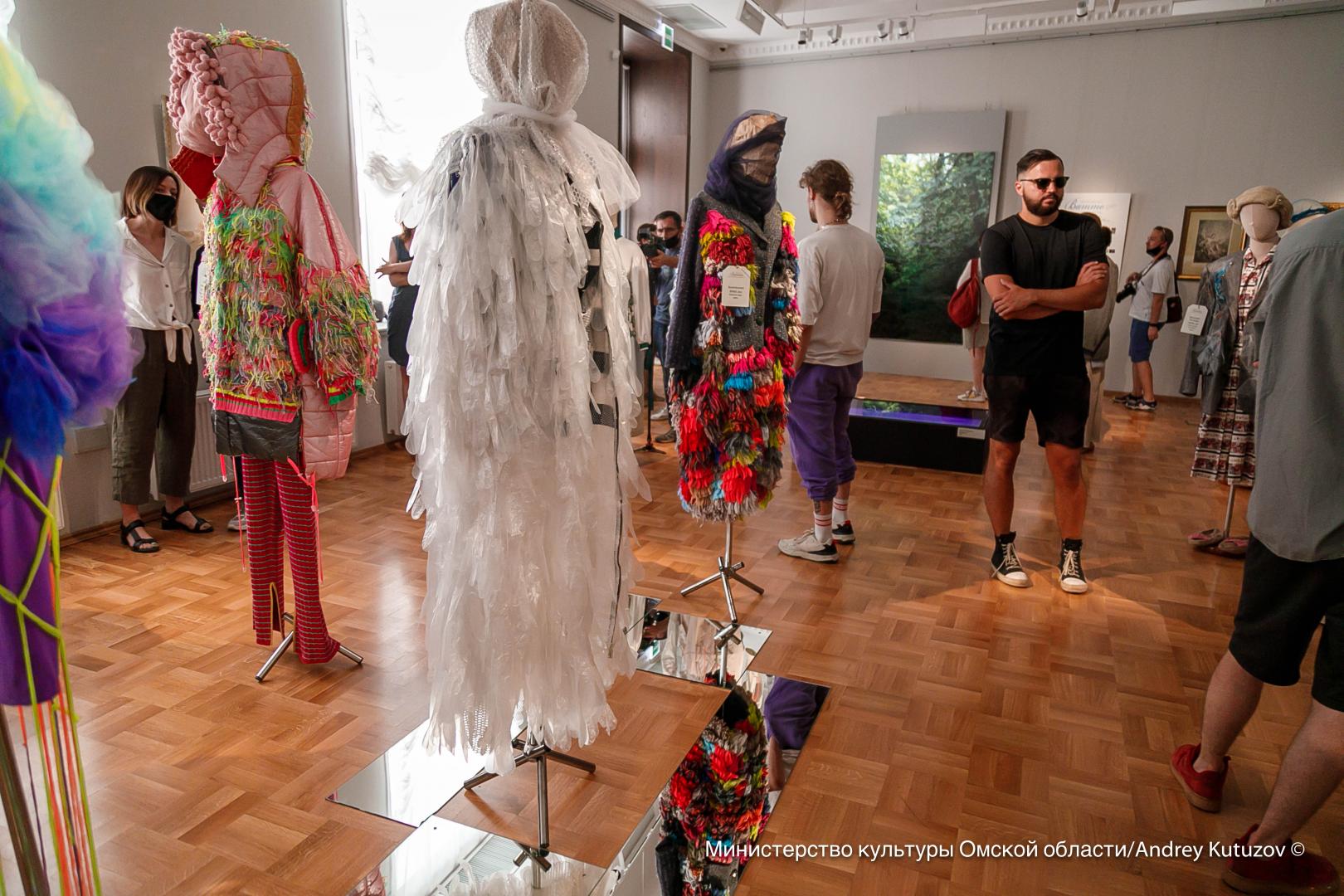 Открытие, проходившее в комбинированном формате, началось ярко – Молодежный театр мод «ОбраZ» (ОмГТУ) представил коллекцию, продолжающую тему выставки. В показе также были задействованы экоукрашения, созданные мастерской «Карма.Бетон» из безопасных для человека и природы материалов ¬– биоразлагаемого пластика и экобетона (приобрести их можно в Музейном магазине по адресу: ул. Музейная, 4).
