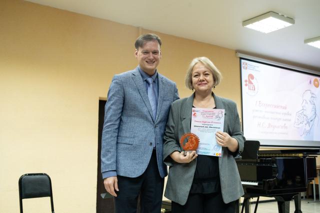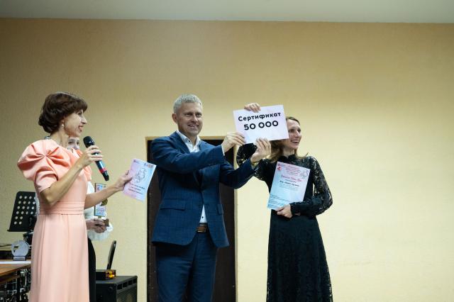Юрий Трофимов вручил Гран-при хору «Звуки музыки» ДШИ №17 города Омска, руководитель Анастасия Казанцева.