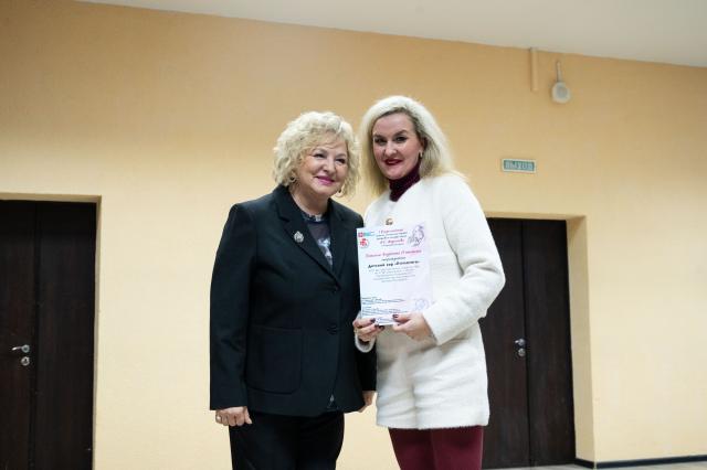 Руководителю хора мальчиков и юношей Омской Шебалинки Татьяне Святской вручила подарок – книгу о музыке и сладости – супруга Николая Сергеевича Якуничева Наталья Статкевич.