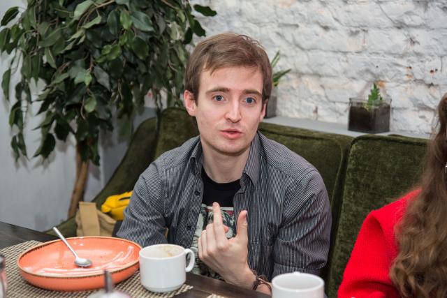 «Когда актеру надо сыграть себя – это сложно. Потому что нужно показывать себя самого толпе людей. А актеру удобнее сделать типаж, чтобы спрятаться за него, вроде это я, а вроде не я. У Саши Галимова была трудная задача», - говорит режиссёр.