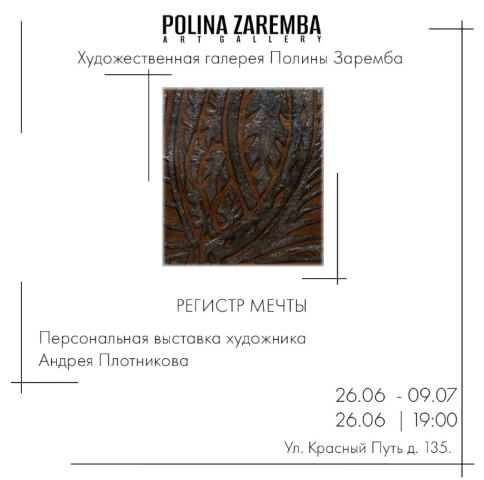 Персональная выставка художника Андрея Плотникова «Регистр мечты» работает в художественной галерее Полины Зарембы по 9 июля 2023 г.
