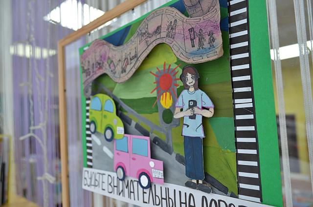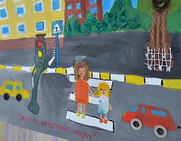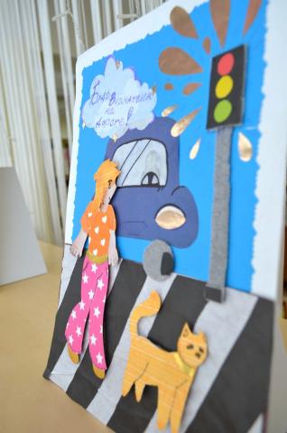 Иллюстративную часть экспозиции представляют работы учащихся детской художественной школы «Модерн» – тематические открытки о безопасности дорожного движения.
