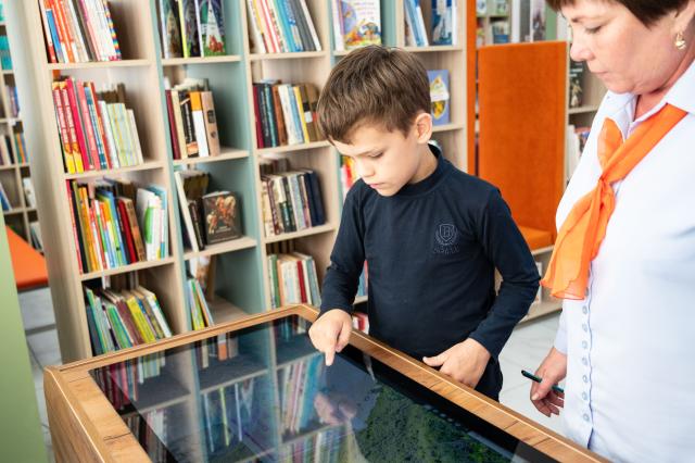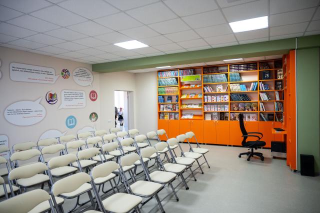 В библиотеке созданы зоны для творческой работы, игры, обучения и совместной деятельности, а также студия блогинга, интерактивный стол и другие современные средства для реализации идей детей. Особое внимание уделено кружкам, мастер-классам и проектам, включая программы для детей с ограниченными возможностями.