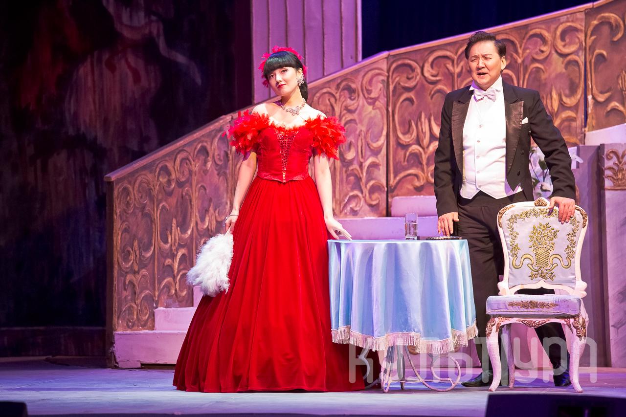 Партию Виолетты исполнил Ли Санин (сопрано), выпускница Университета Темпл в США, кандидат наук в области вокальной музыки. Во время пребывания в США давала сольные концерты и выступала во многих оперных театрах, включая Карнеги-холл, Линкольн-центр искусств, Нью-Йоркский национальный оперный центр, Чикагский симфонический зал и т.д.