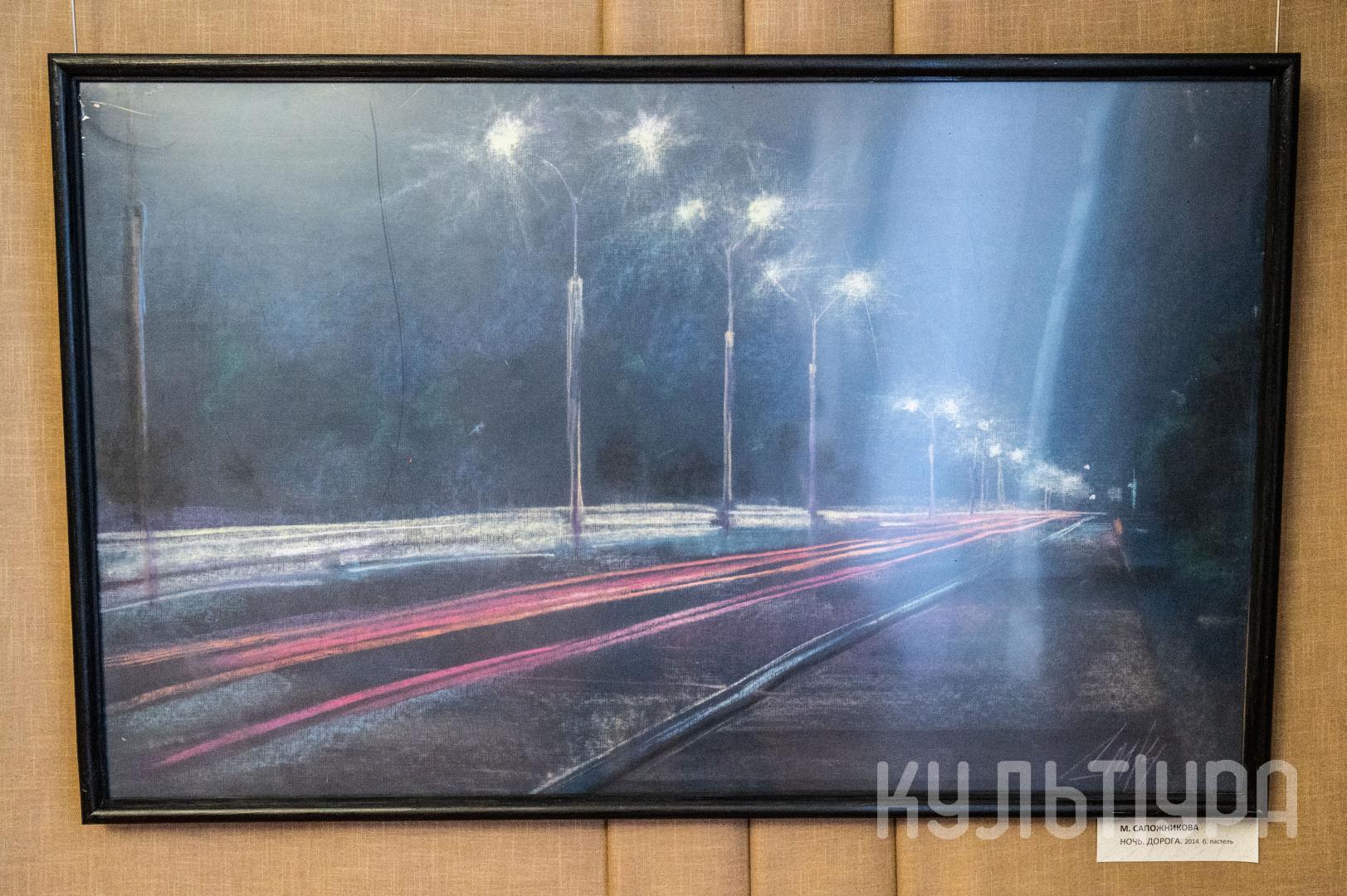 В работах Марины Сапожниковой (1986 г.р.) прослеживается глубокое понимание техники пастели, ее возможностей. Это и темный таинственный лес со свинцовыми облаками над ним, тропинкой, уходящей вглубь, и ожиданием чего-то загадочного, что должно произойти прямо сейчас на рисунке. Это и прекрасные, немного задумчивые цветы, стоящие в вазе, так мечтательно отображающиеся в оконном стекле. Это и работы из цикла городского пейзажа, показывающие, насколько урбанистичным стали картинки, окружающие городских жителей в каждый миг существования. Все это – ее Величество пастель и рука мастера, придающая рисунку то реалистичность пейзажа, то романтичность и изящество натюрморта, оставляющая недосказанностью рисунка загадку, разгадать которую и предстоит зрителям выставки. И каждый разгадает ее по-своему…