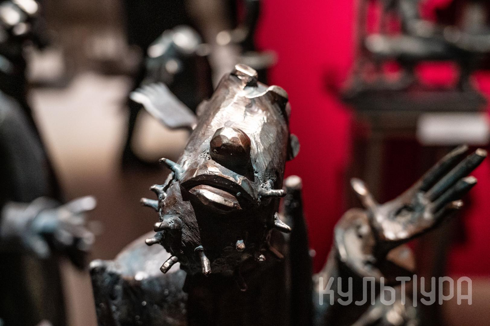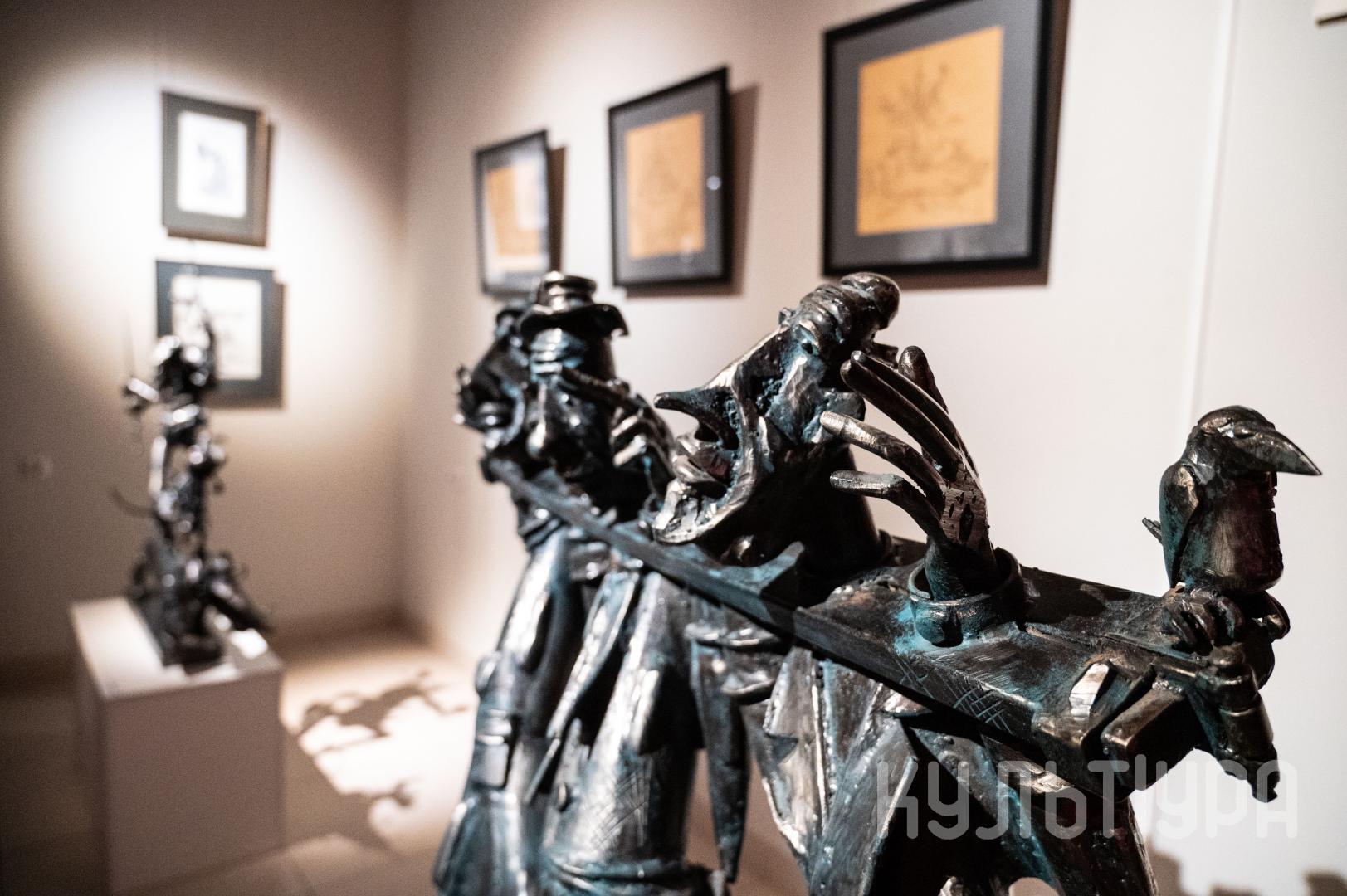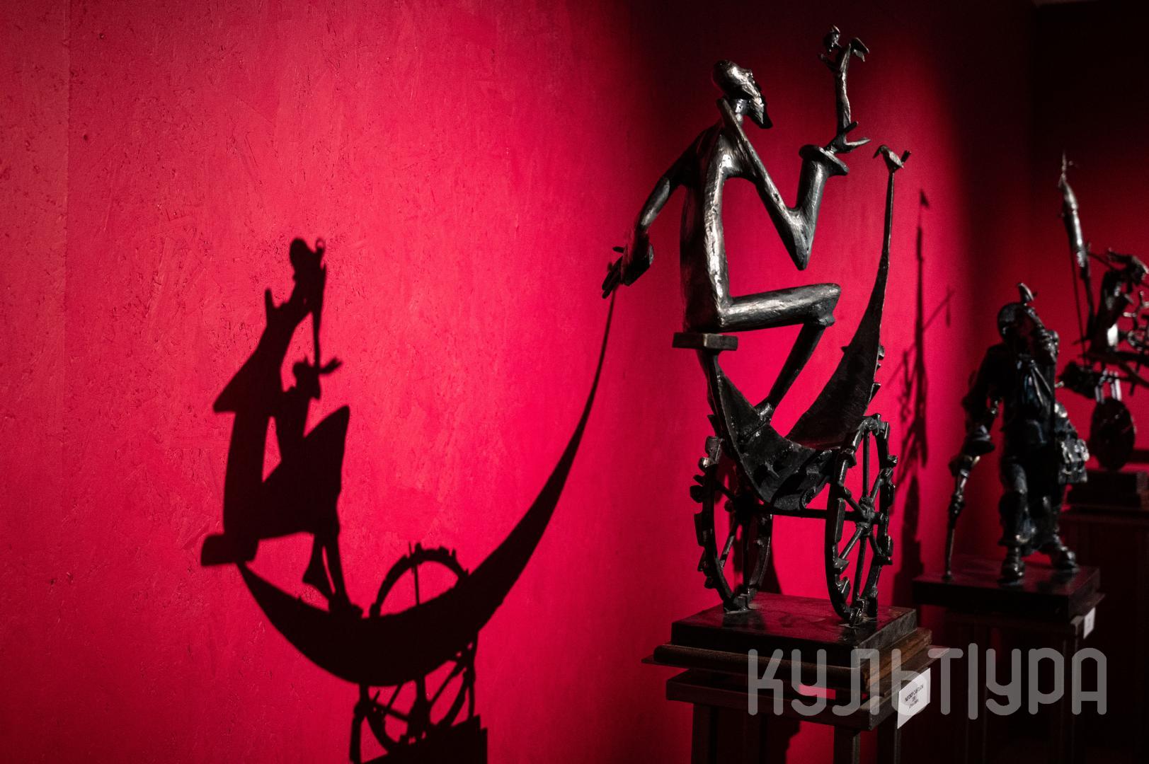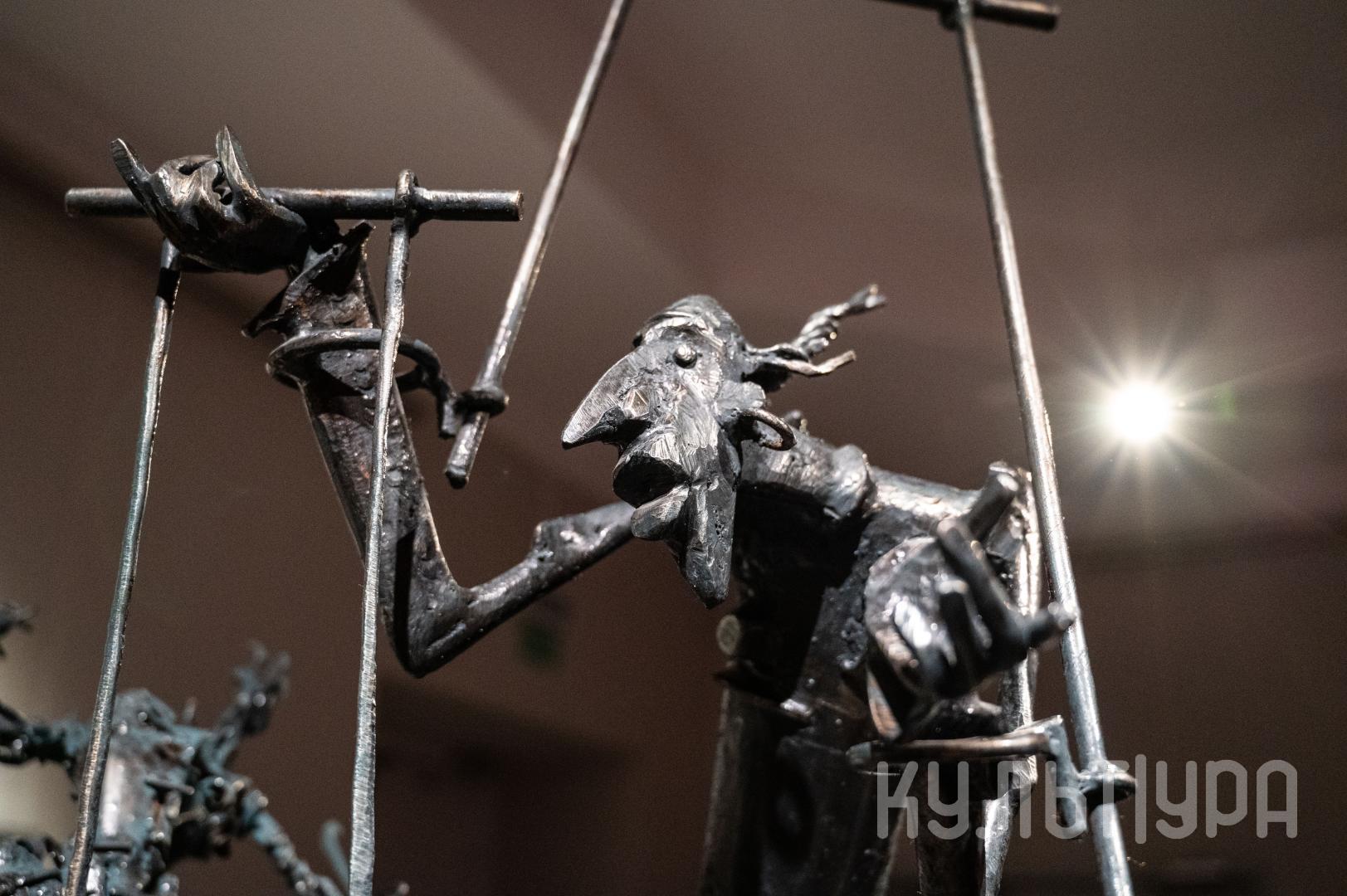 Весь первый этаж выставки METAЛLIFE организаторы превратили в разновременное пространство, в котором сочетаются античные и библейские сюжеты, европейское средневековье и кочевая Азия. Скульптуры из серии малой пластики невелики по размеру – достигают максимум 40 см, но монументальные произведения – высотой до 4 метров - поражают своим величием. Каждая из работ имеет свое настроение, стиль исполнения и чем-то напоминает карнавал ваяний из металла в образах шутов, королей, рыцарей, музыкантов, странников.