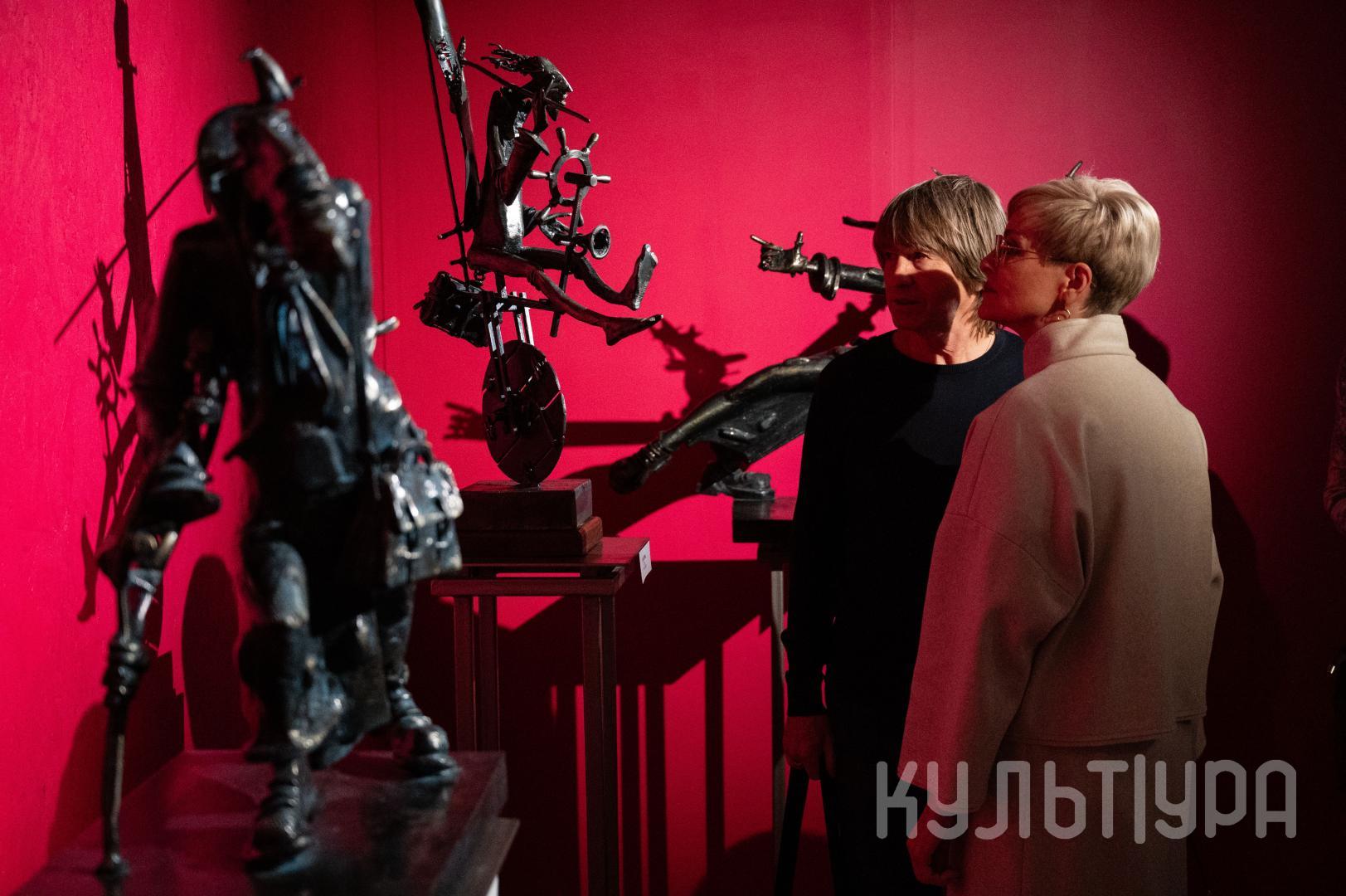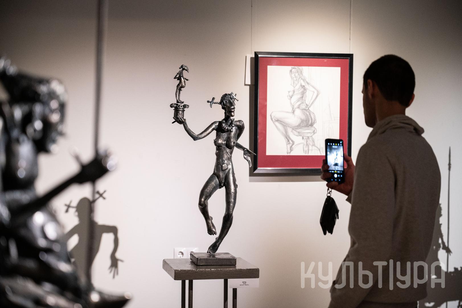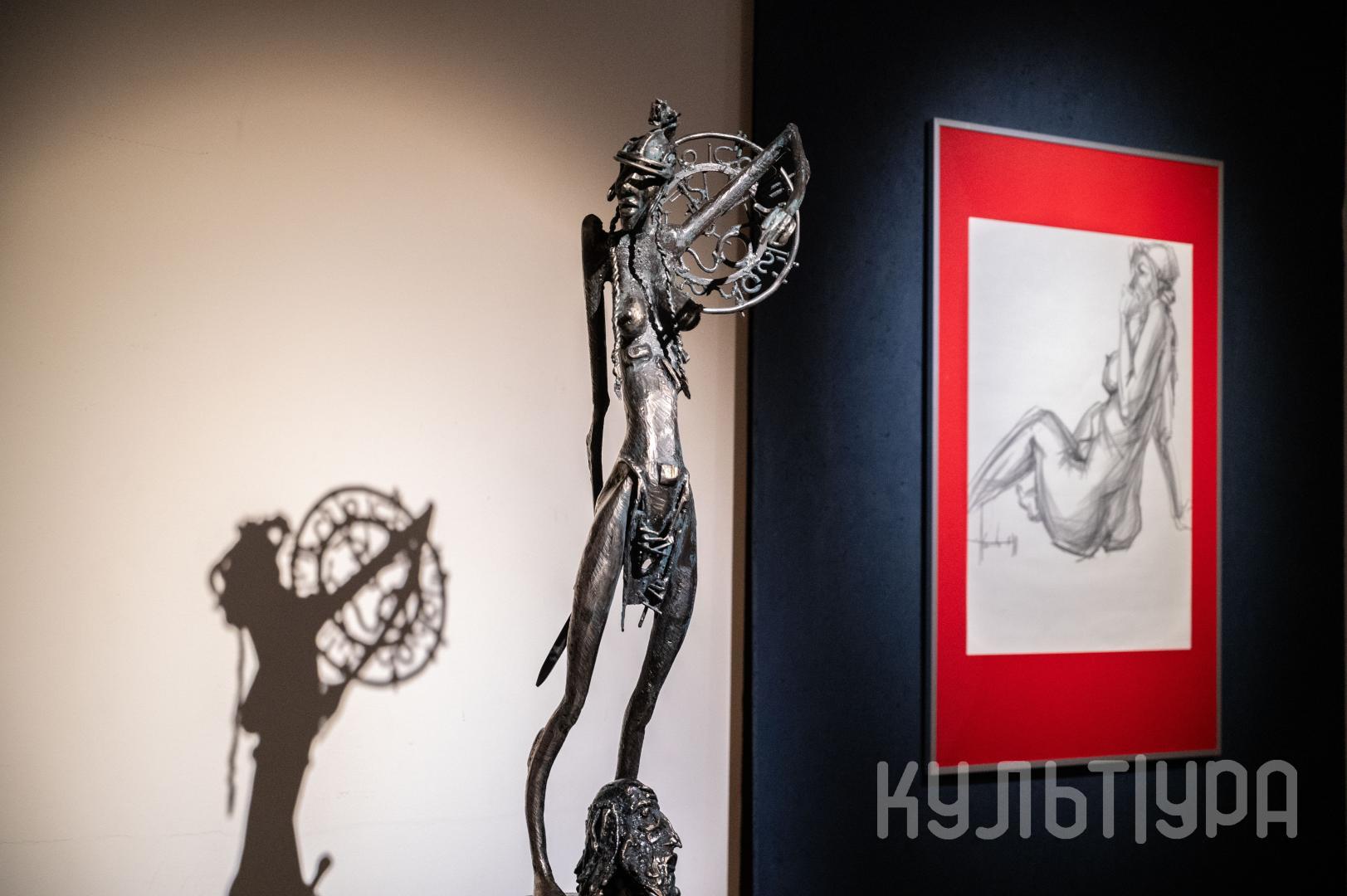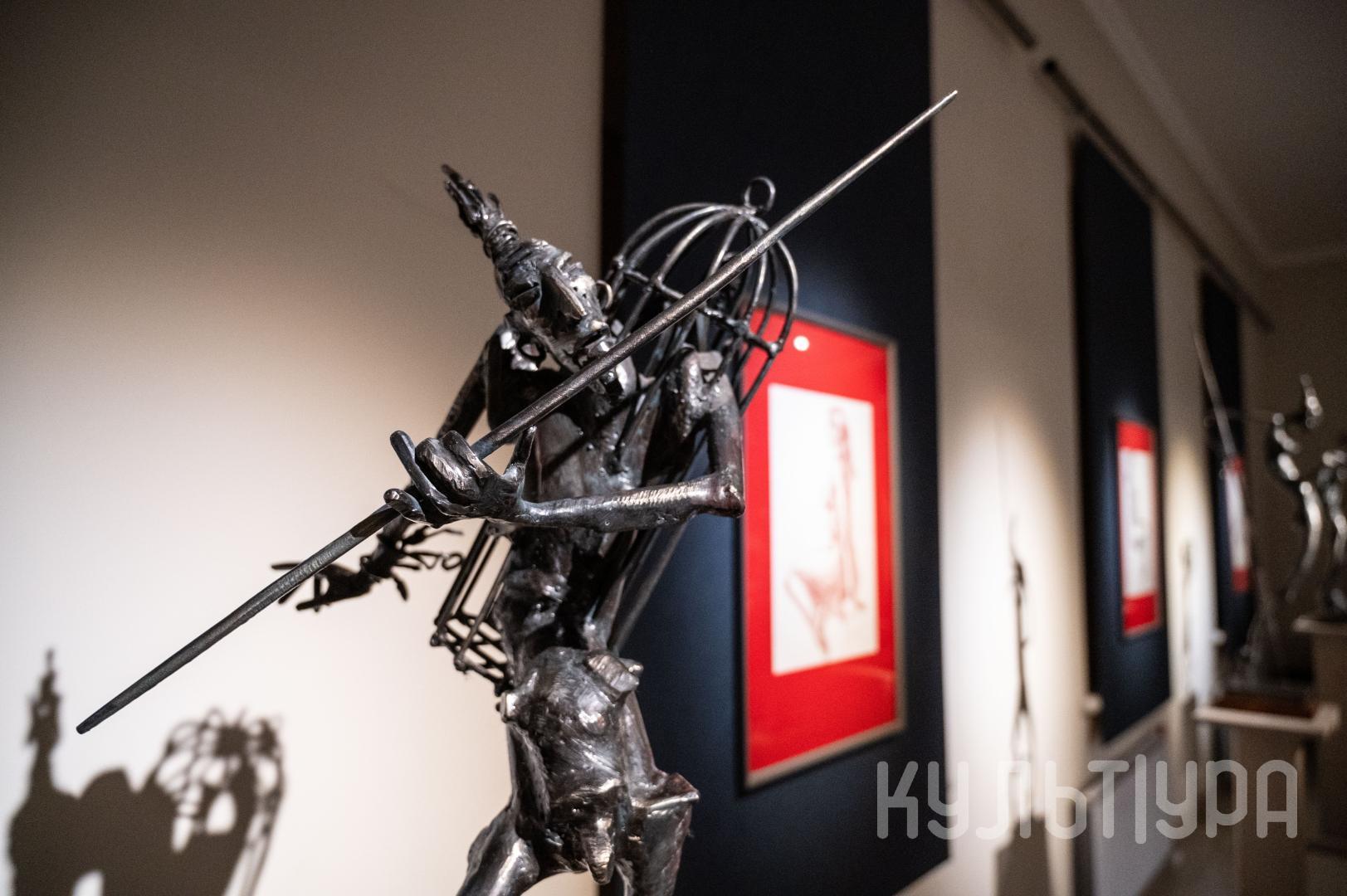 Весь первый этаж выставки METAЛLIFE организаторы превратили в разновременное пространство, в котором сочетаются античные и библейские сюжеты, европейское средневековье и кочевая Азия. Скульптуры из серии малой пластики невелики по размеру – достигают максимум 40 см, но монументальные произведения – высотой до 4 метров - поражают своим величием. Каждая из работ имеет свое настроение, стиль исполнения и чем-то напоминает карнавал ваяний из металла в образах шутов, королей, рыцарей, музыкантов, странников.