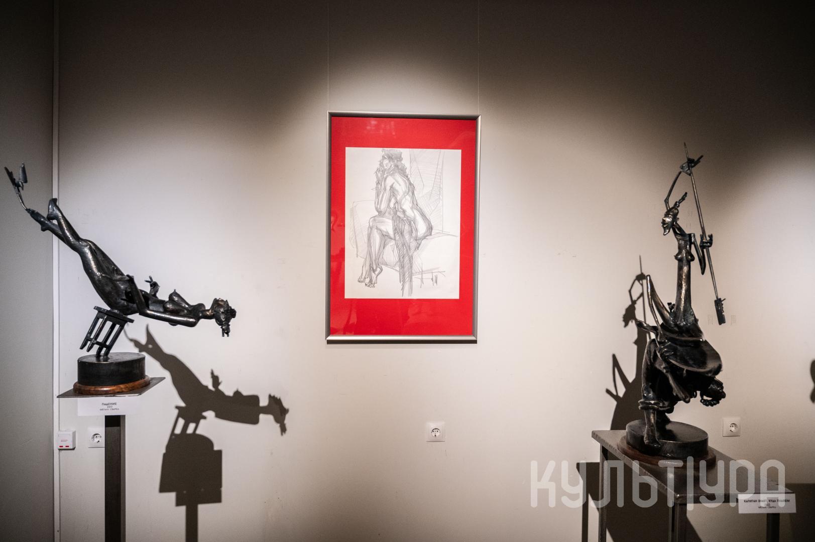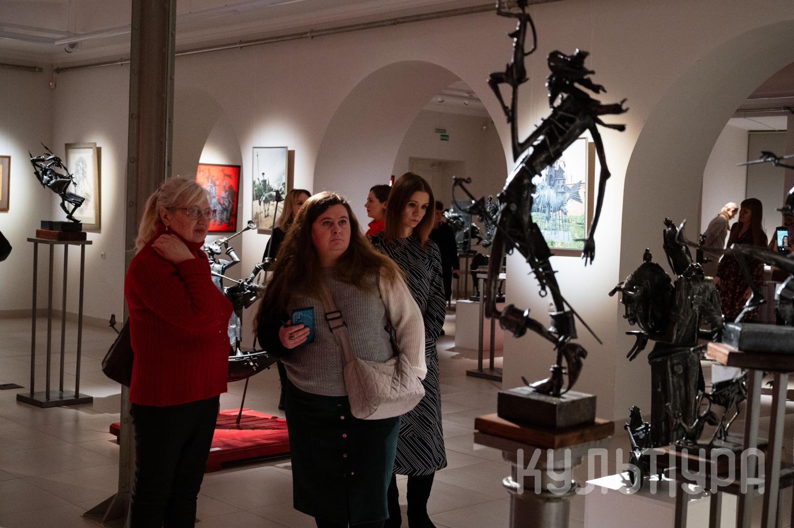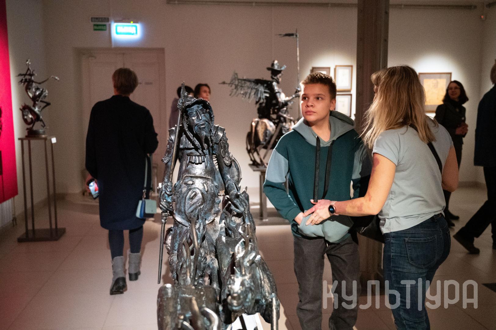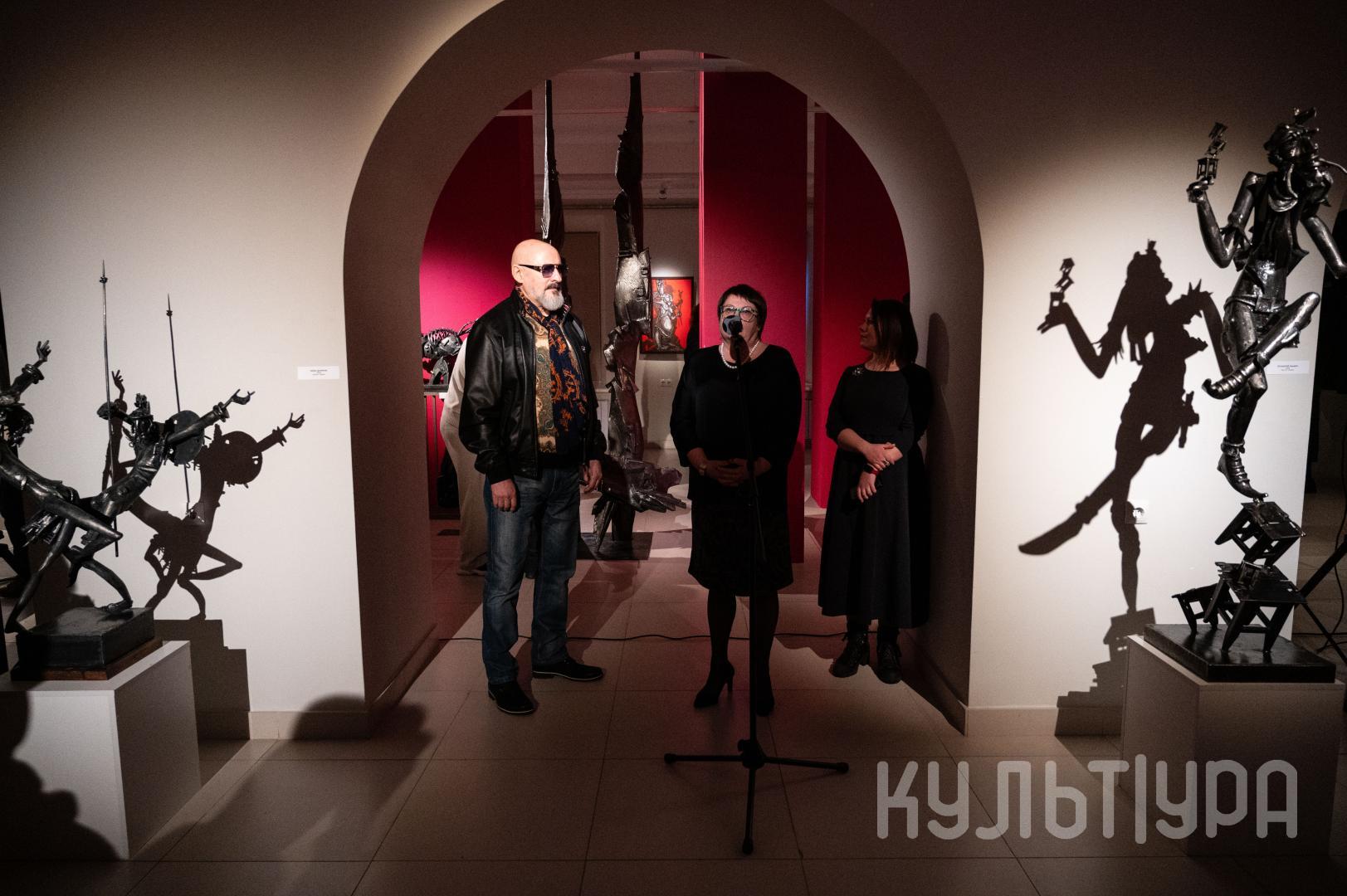 Весь первый этаж выставки METAЛLIFE организаторы превратили в разновременное пространство, в котором сочетаются античные и библейские сюжеты, европейское средневековье и кочевая Азия. Скульптуры из серии малой пластики невелики по размеру – достигают максимум 40 см, но монументальные произведения – высотой до 4 метров - поражают своим величием. Каждая из работ имеет свое настроение, стиль исполнения и чем-то напоминает карнавал ваяний из металла в образах шутов, королей, рыцарей, музыкантов, странников.