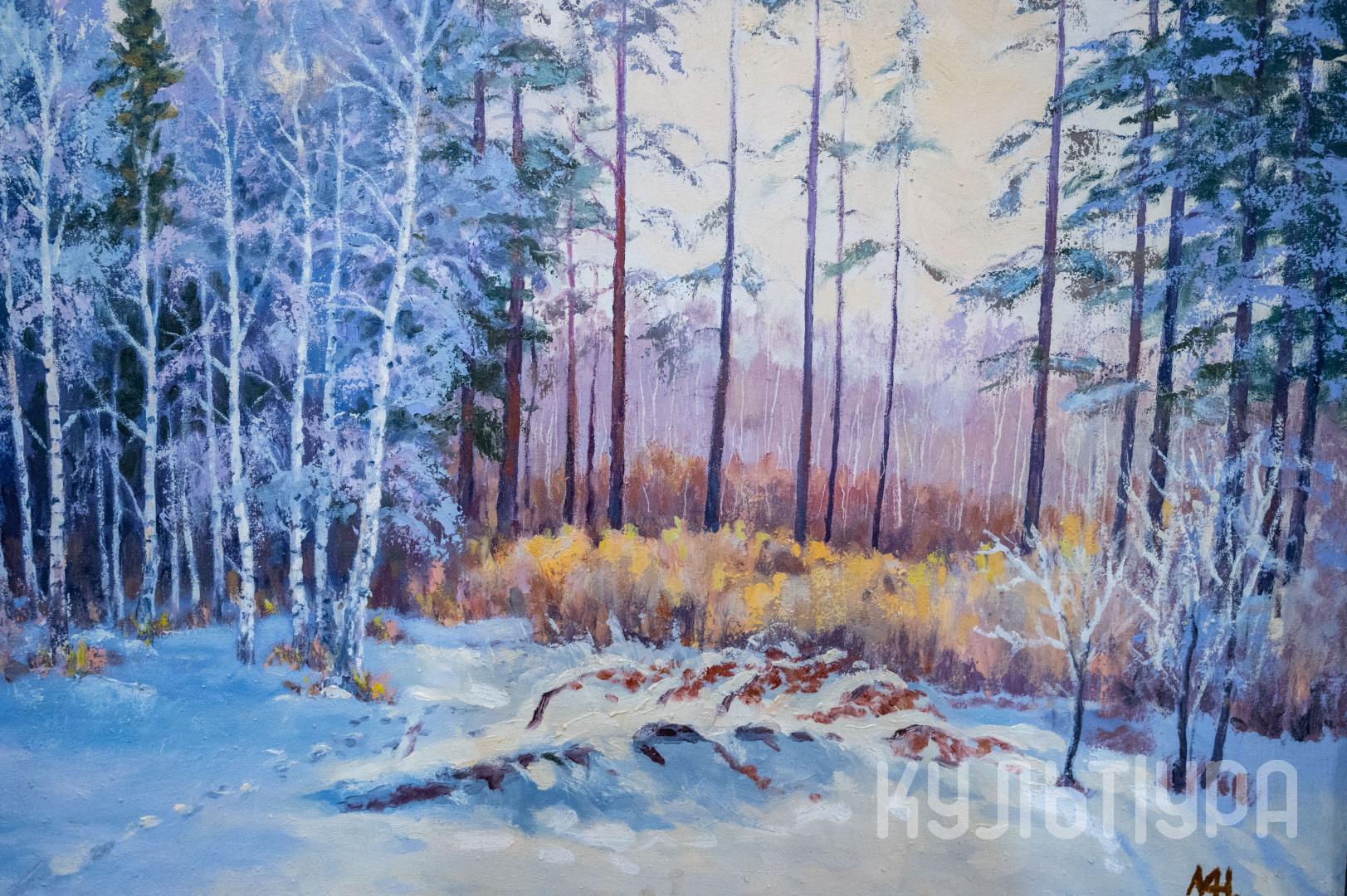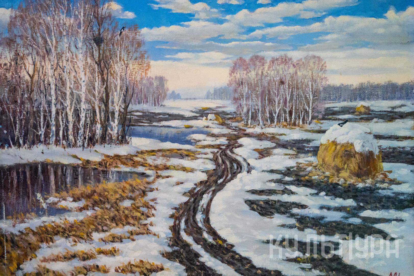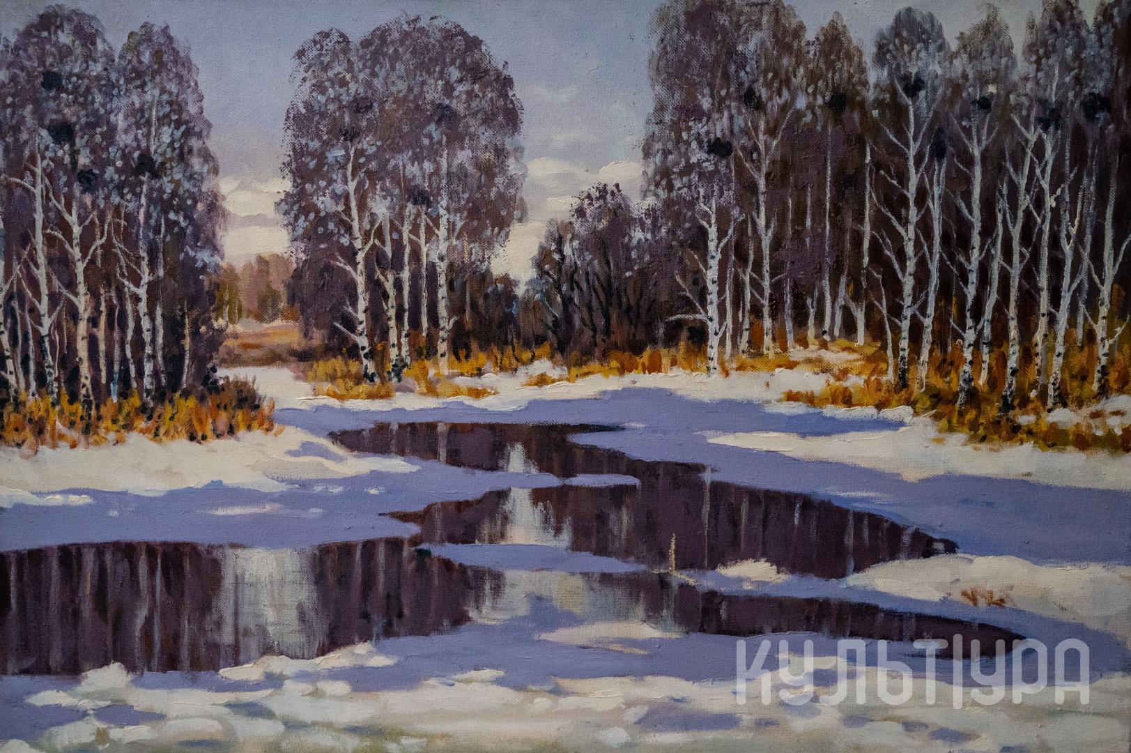 Непосредственностью восприятия натуры отличаются картины в технике масляной живописи: «На Иртыше» (1995), «Весна» (2004), «Снегири» (2002).