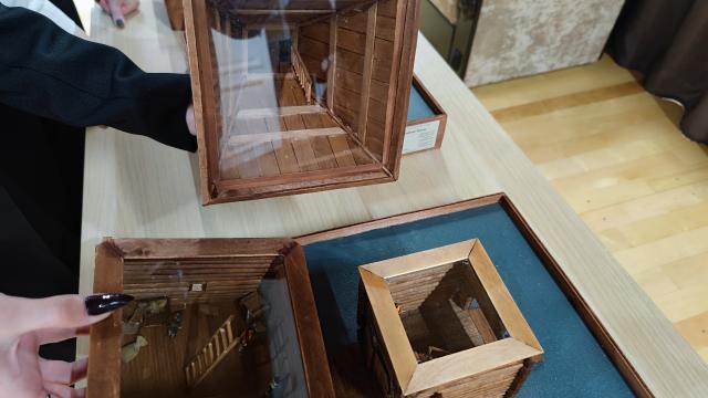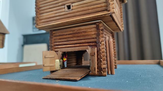 В качестве основного строительного материала использованы палочки для сахарной ваты, покрытые морилкой. Процесс изготовления макета занял почти 8 месяцев.