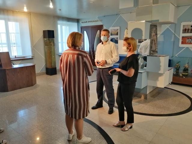 В Омске с рабочим визитом находится начальник отдела культурной политики министерства культуры Камчатского края Оксана Прокопенко. Сейчас в городе Петропавловск-Камчатский строится новый театр кукол, и цель визита представителя министерства – познакомиться с Омским государственным театром куклы, актера, маски «Арлекин», изучить интерьерные решения театра, их функционал, обменяться опытом. Сегодня экскурсию по «Арлекину» для Оксаны Прокопенко провели министр культуры Омской области Юрий Трофимов и директор театра Татьяна Канащук.