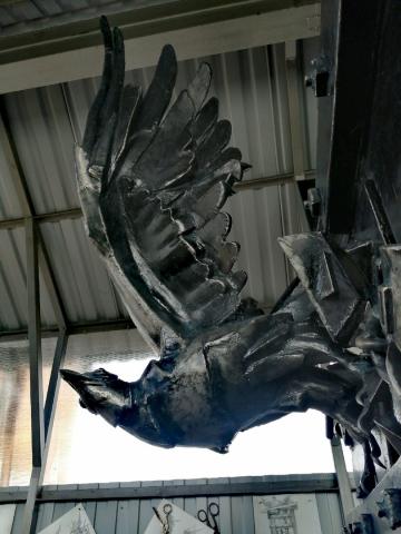 Губернатору Капралов показал свою полностью законченную работу, - памятный знак, посвящённый 200-летию Фёдора Михайловича Достоевского. Идея навеяна "Записками из Мертвого дома". Металлическая скульптура состоит из двух основных деталей, изображающих массивную тюремную дверь и орла, который сквозь неё выходит на волю.