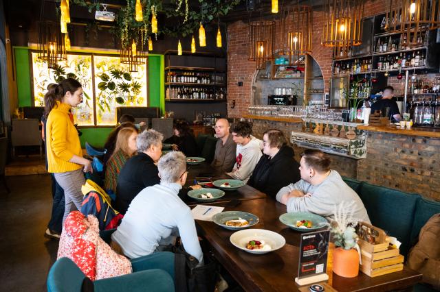 На Культурном завтраке с журналистами встретились режиссер-постановщик спектакля Людмила Исмайлова, актеры Дмитрий Макаров (Дон Кихот), Дмитрий Исаенко (Герцог) и композитор Егор Лябакин.