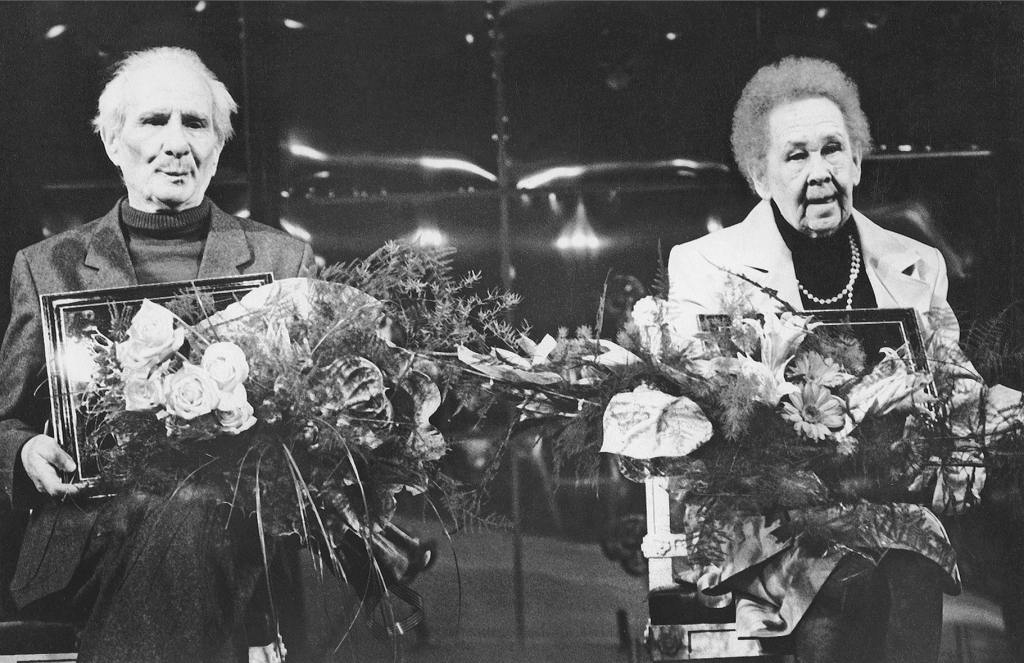 Вручение Национальной театральной премии "Золотая маска", ноябрь 1997 г. Елена Псарева и драматург Александр Володин.