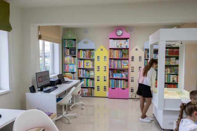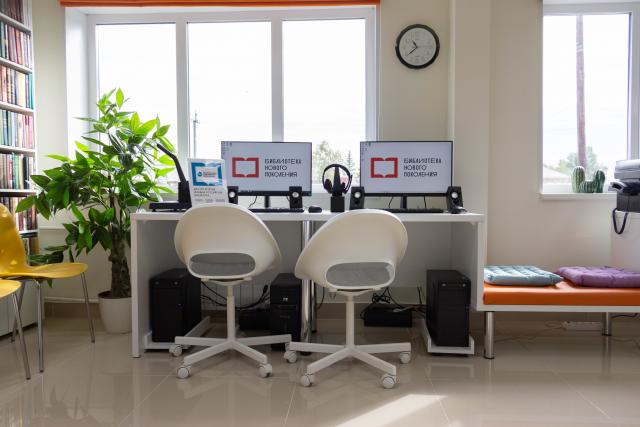 Благодаря федеральным средствам библиотечное пространство было полностью переформатировано, изготовлена специальная мебель по индивидуальному проекту, приобретено компьютерное и интерактивное мультимедийное оборудование, обновлен библиотечный фонд на 4 тыс. экземпляров.