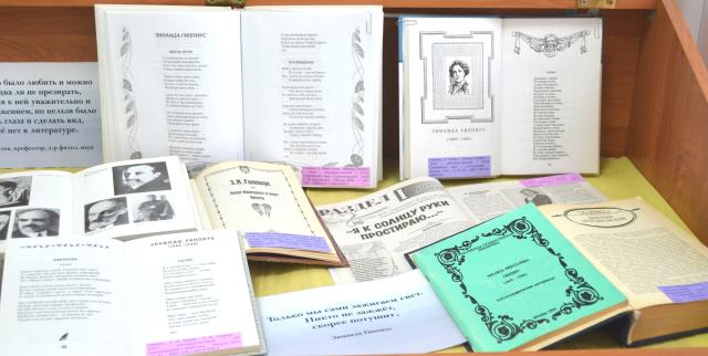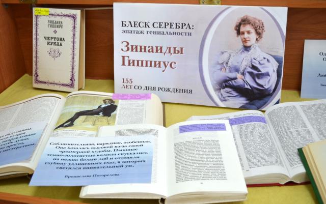 В Омской областной библиотеке для детей и юношества к 155-летию со дня рождения поэтессы, писательницы, драматурга и литературного критика, яркой представительницы Серебряного века открылась выставка «Блеск серебра: эпатаж гениальности Зинаиды Гиппиус».